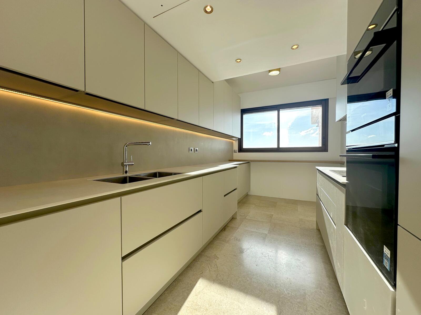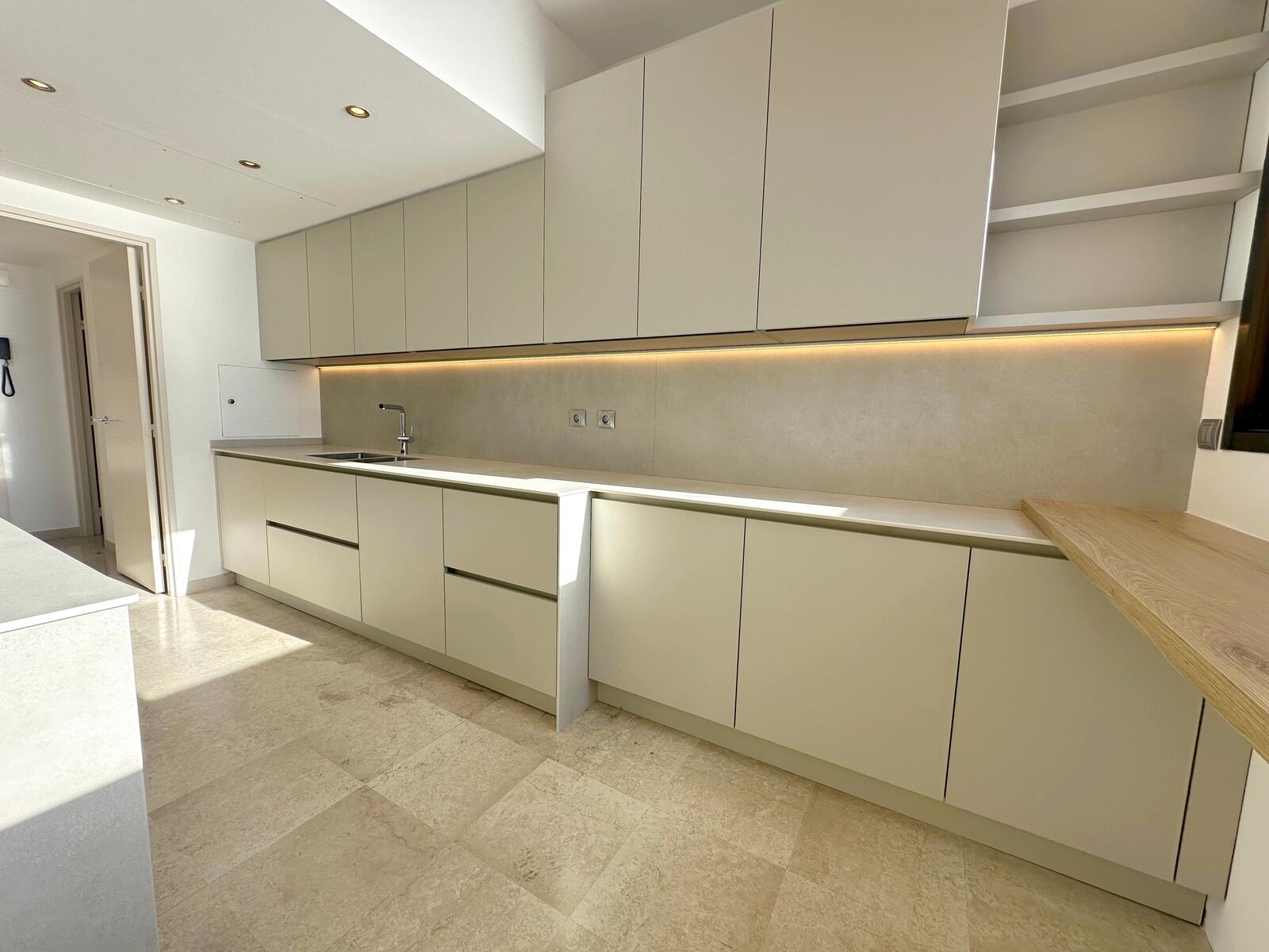 An entrance, an independent fitted kitchen (renovated in January 2026), a double living/dining room opening onto a loggia, a master bedroom with dressing room, bathroom and private loggia, two bedrooms, two bathrooms and a guest toilet.