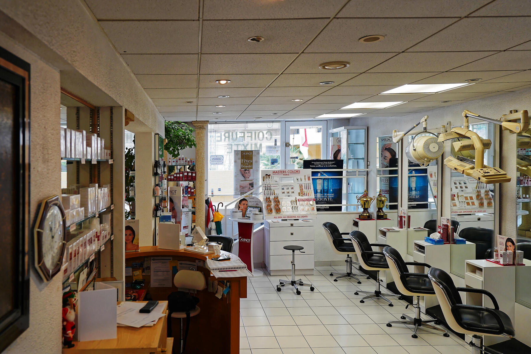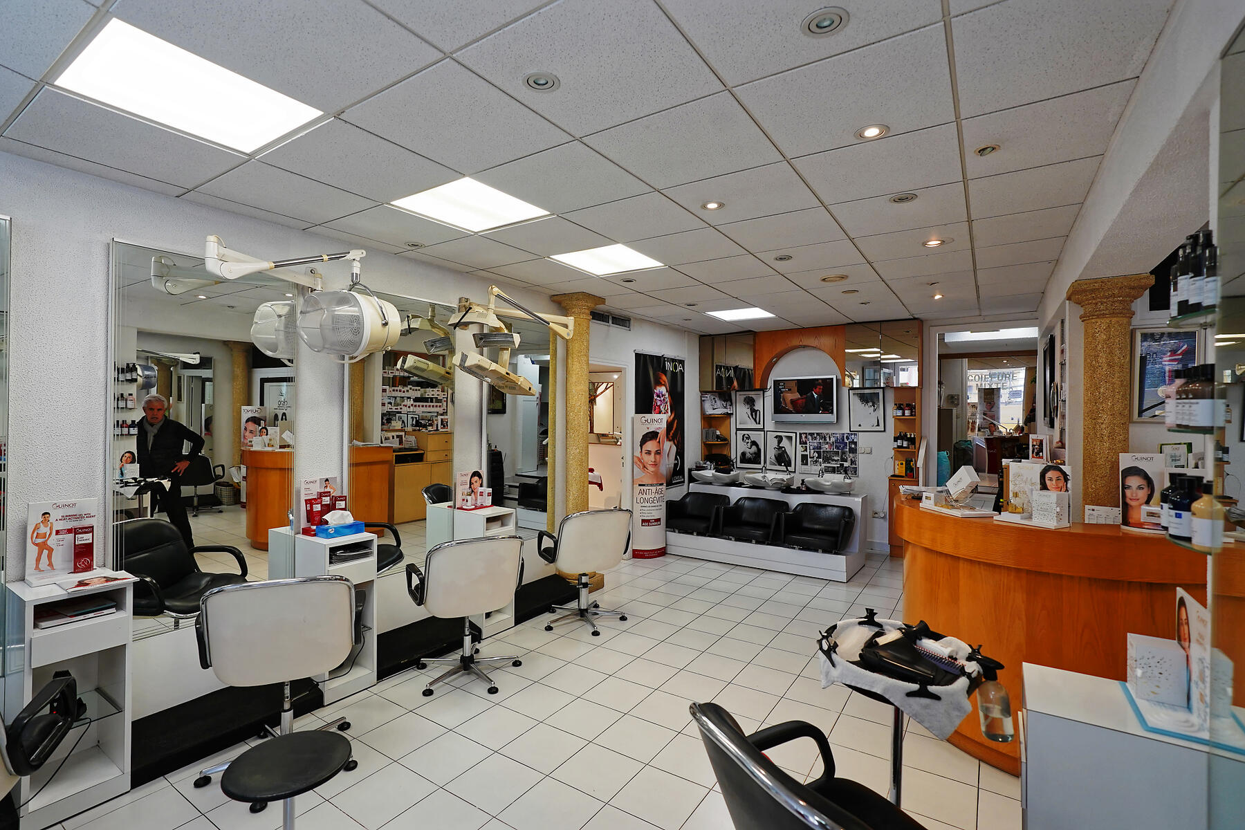 Located on the port of Fontvieille, the salon covers approximately 90 m², has a large window, a terrace with sea view, a large room, two massage/beauty cabins with showers, a manicure station, 10 hairdressing stations, 3 shampoos, air conditioning and a large established clientele. The rent is €4,800/month including fees, rental contract 06.03.09.