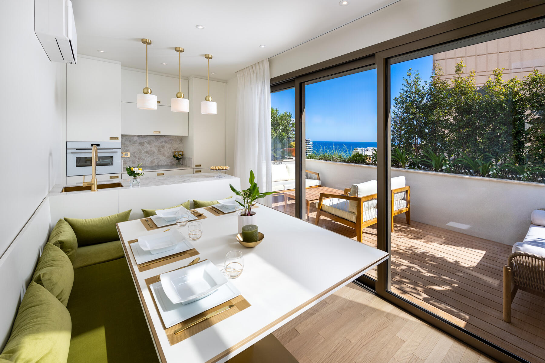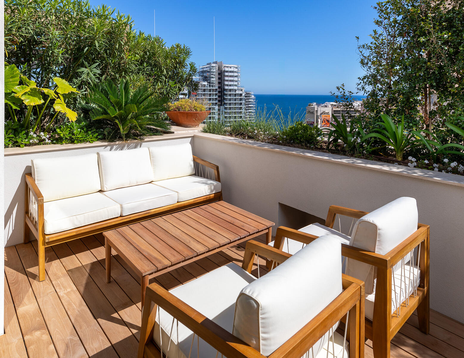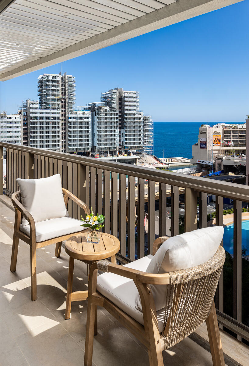 This 2 bedrooms turnkey penthouse has been meticulously crafted to create an unparalleled feeling of luxury, comfort and space, featuring at the 8th floor a master bedroom with in suite bathroom and walking closet, 1 small office/bedroom, guest shower bathroom, a living room benefiting from a East-South exposure with partial sea view, and Mareterra a nicely integrate staircase serving: