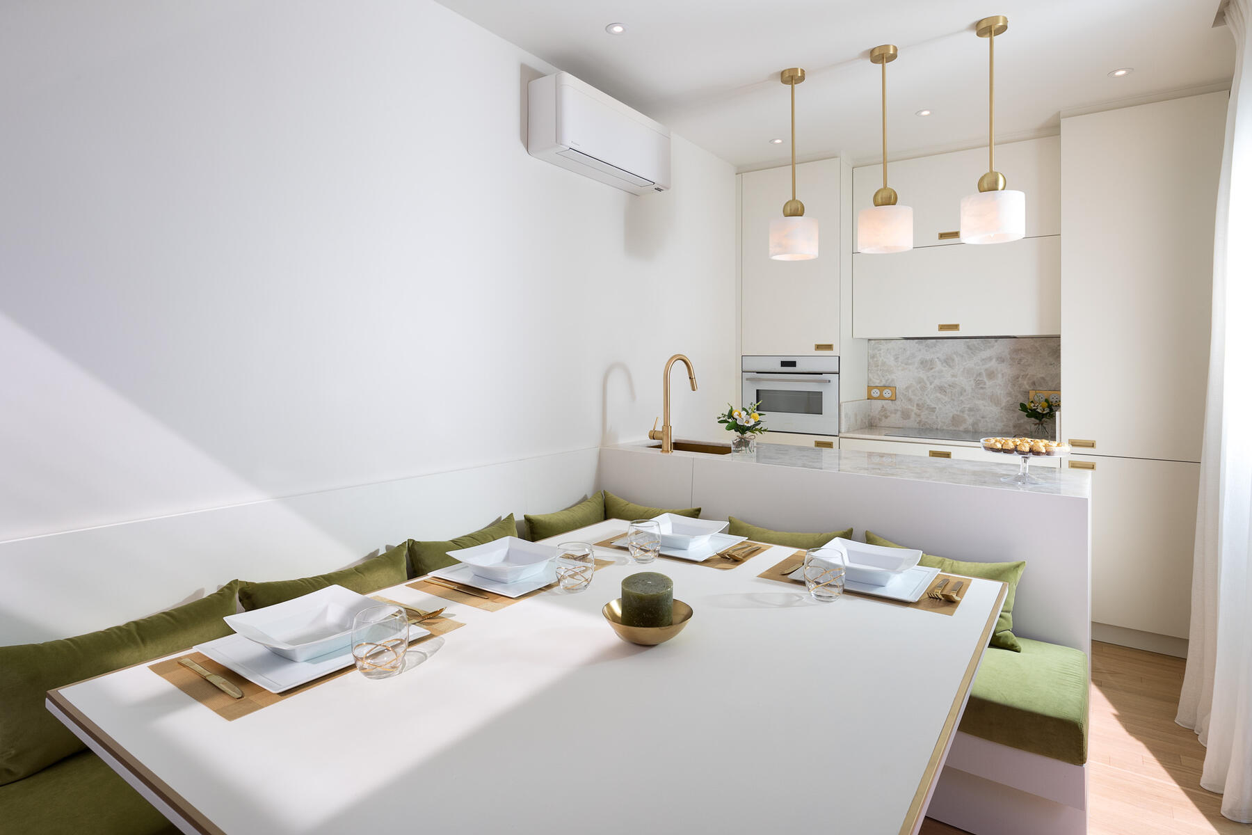 The 9th floor featuring a well crafted open kitchen with dining area benefitting of large windows streaming natural lighting with access to a confortable terrace with East-South-West exposure and landscaped with a wide variety of vegetation.