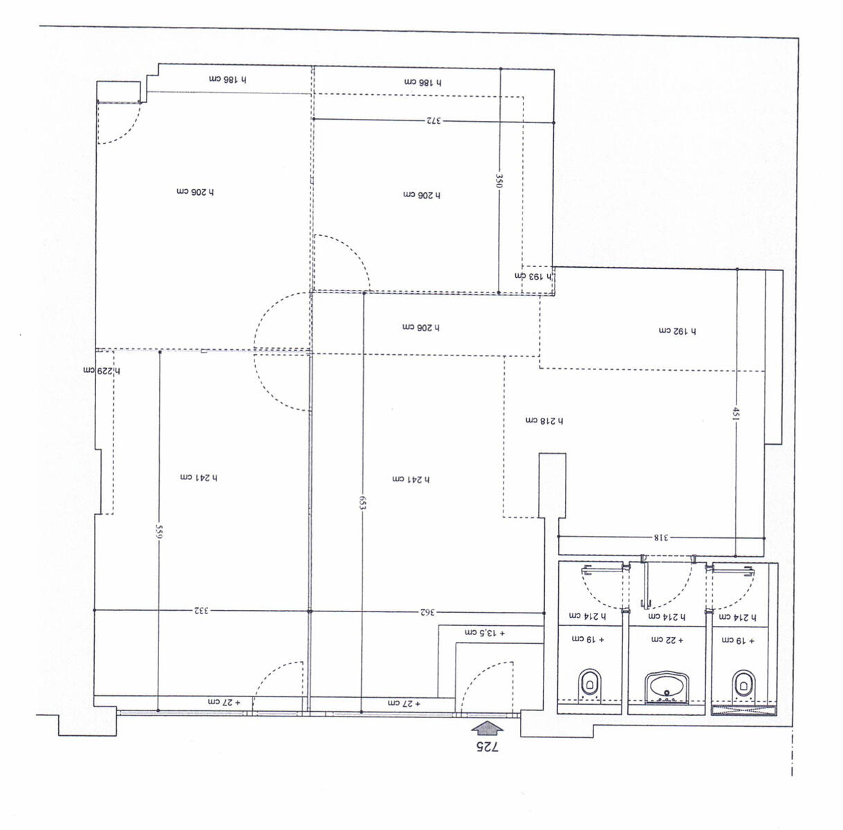 Office in a very good condition with parquet flooring, comprised of a main room, including 3 offices with partitioned windows, a kitchenette corner and a double toilet. Large shop front window.