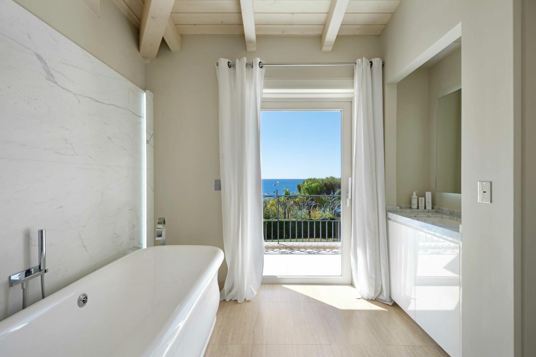 - Guest bedroom with sea-view terrace and bathroom.