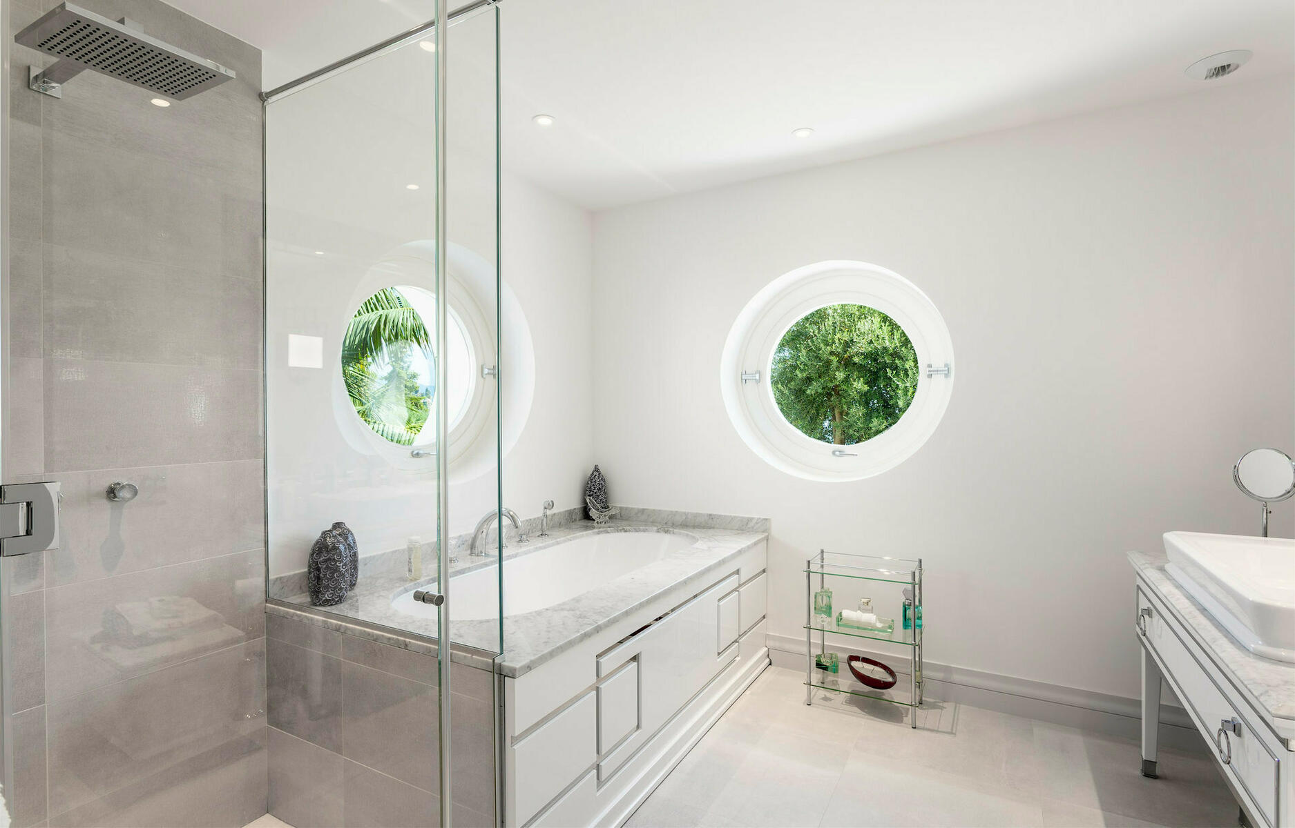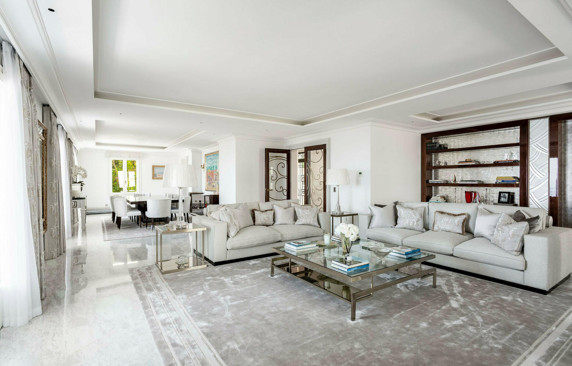 On the second lower level is a large lounge area with a living room, bar, a spectacular full-wall wine cellar, hammam and laundry room.