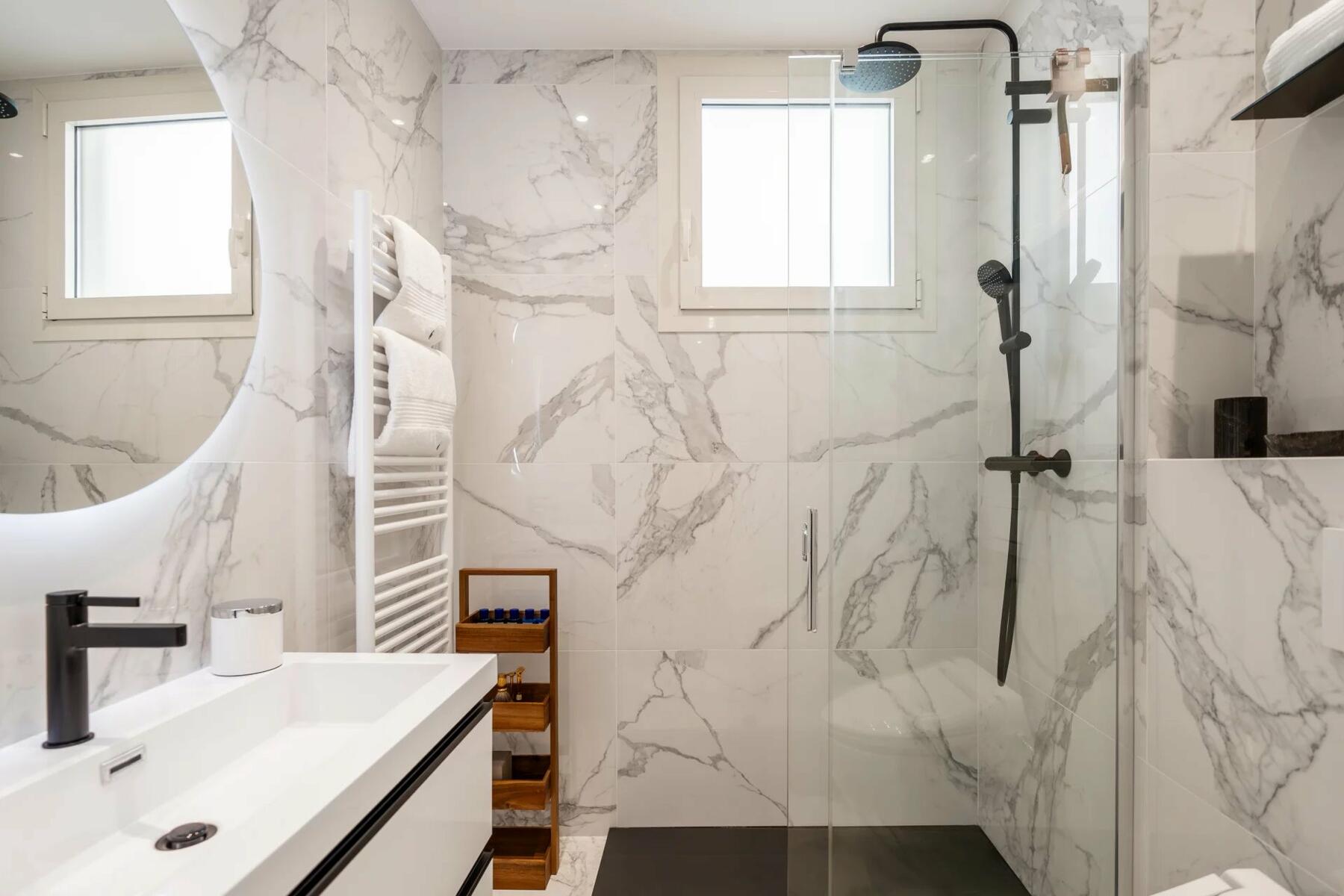 This mixed-use 2-room flat with 48 sqm of living space and 5 sqm of terraces has been completely renovated with high end materials and tastefully furnished.
