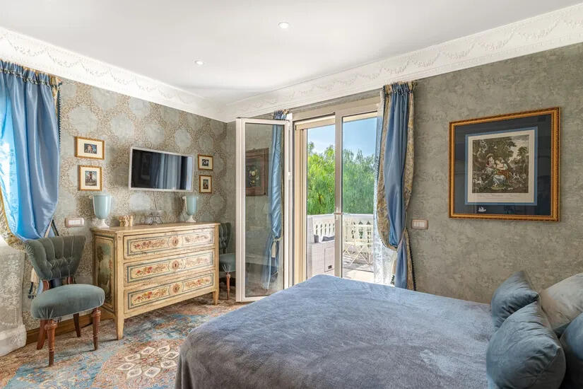 Disposée sur 3 niveaux reliés par un ascenseur privatif, elle se compose d'un grand salon, cuisine et salle de douche, 5 chambres avec 4 salles de bains et terrasse avec vue sur la mer au premier niveau.