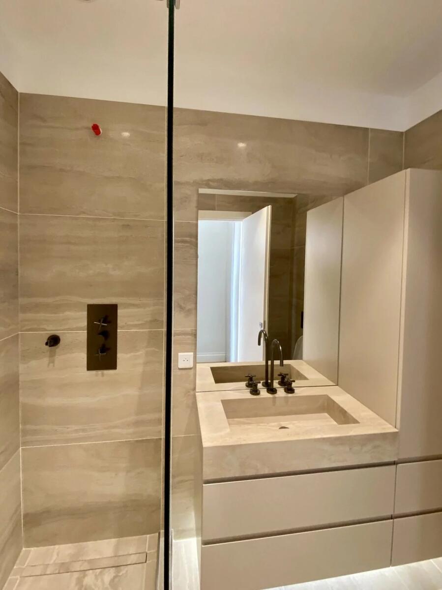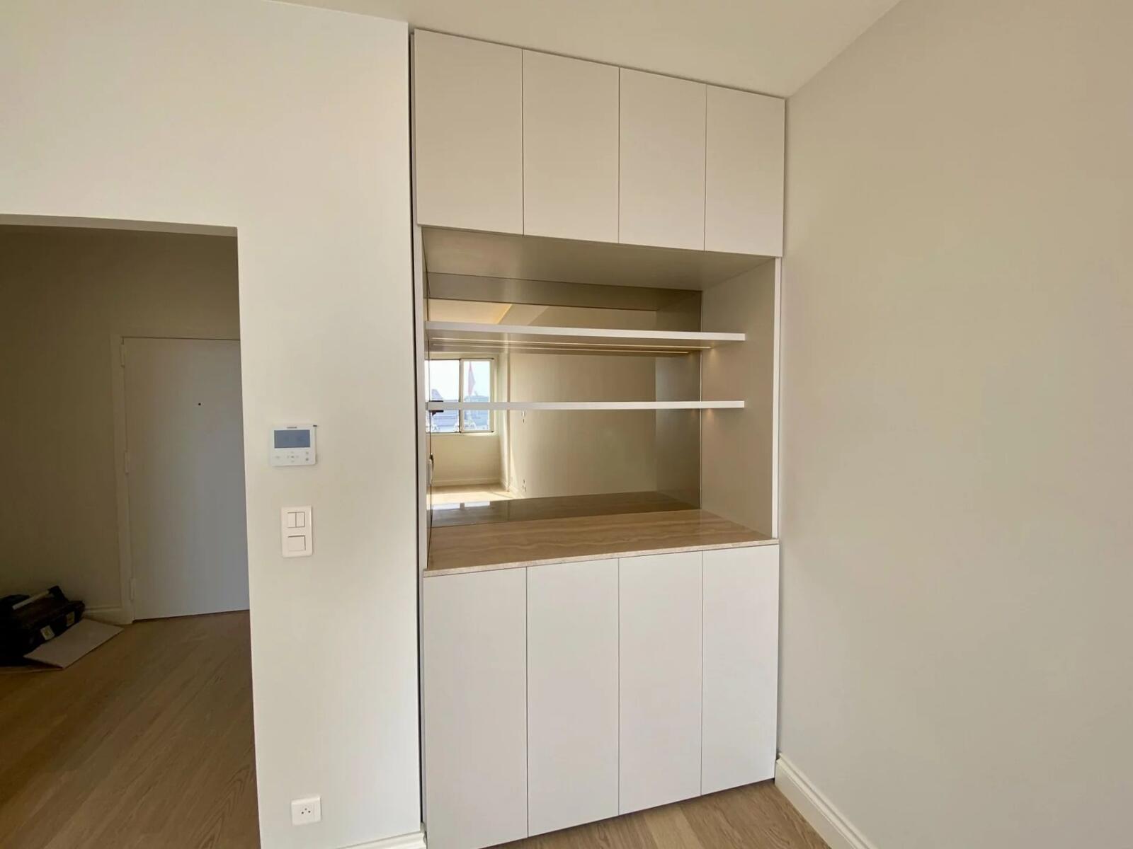 Cet appartement à été redistribué et comprends actuellement une entrée avec rangements, un salon en facade, une cuisine ouverte entièrement équipée, une chambre en suite comprenant un dressing sur mesure ouvrant sur une terrasse de 5m2 et une spacieuse salle de douches.