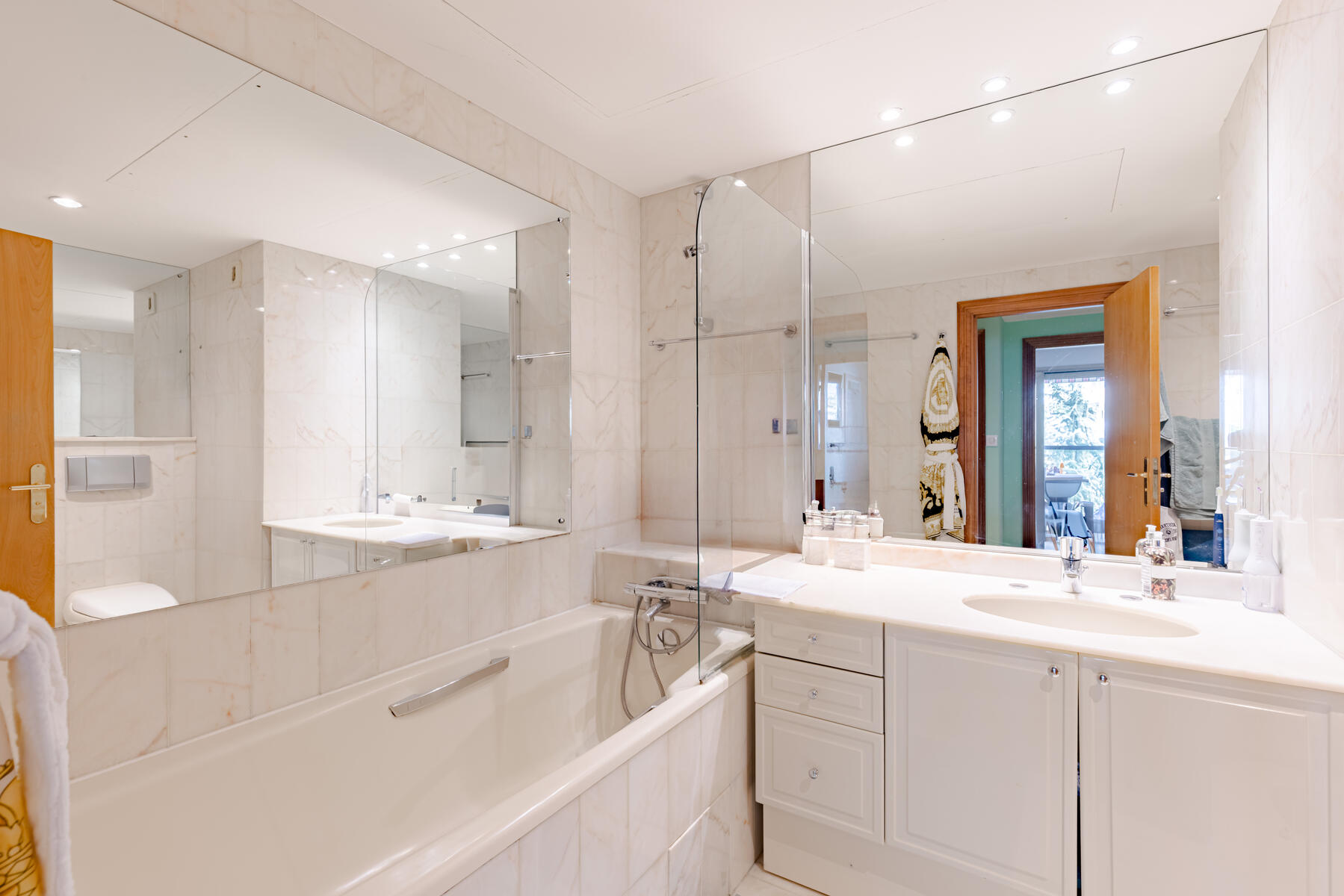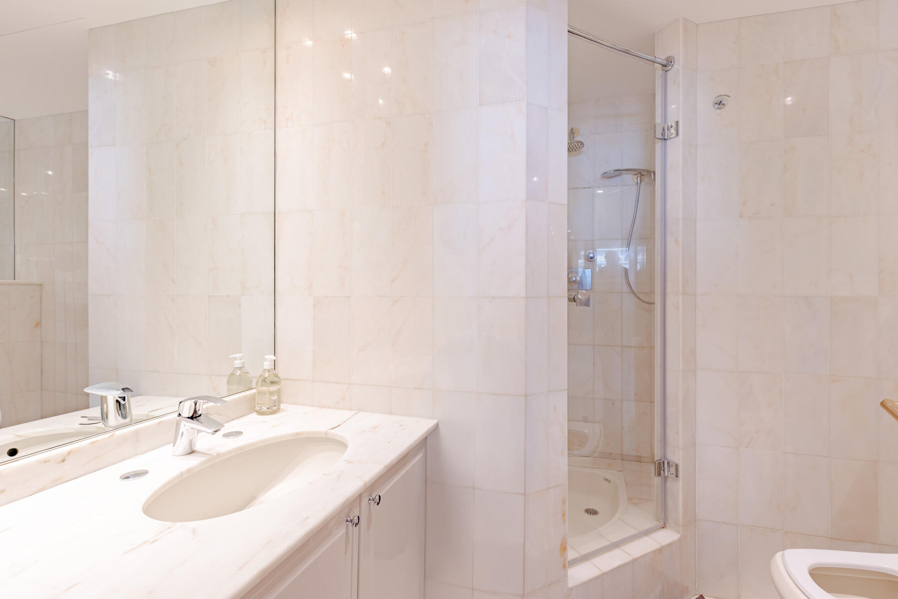 Ce Penthouse offre une vue mer panoramique imprenable. Il se compose d'une entrée, d'un double séjour avec salle à manger, de deux chambres avec salles de bains en suite, ainsi qu'une cuisine indépendante entièrement équipée. Au dernier étage, une piscine privée sur le toit et un espace lounge invitent à la détente.