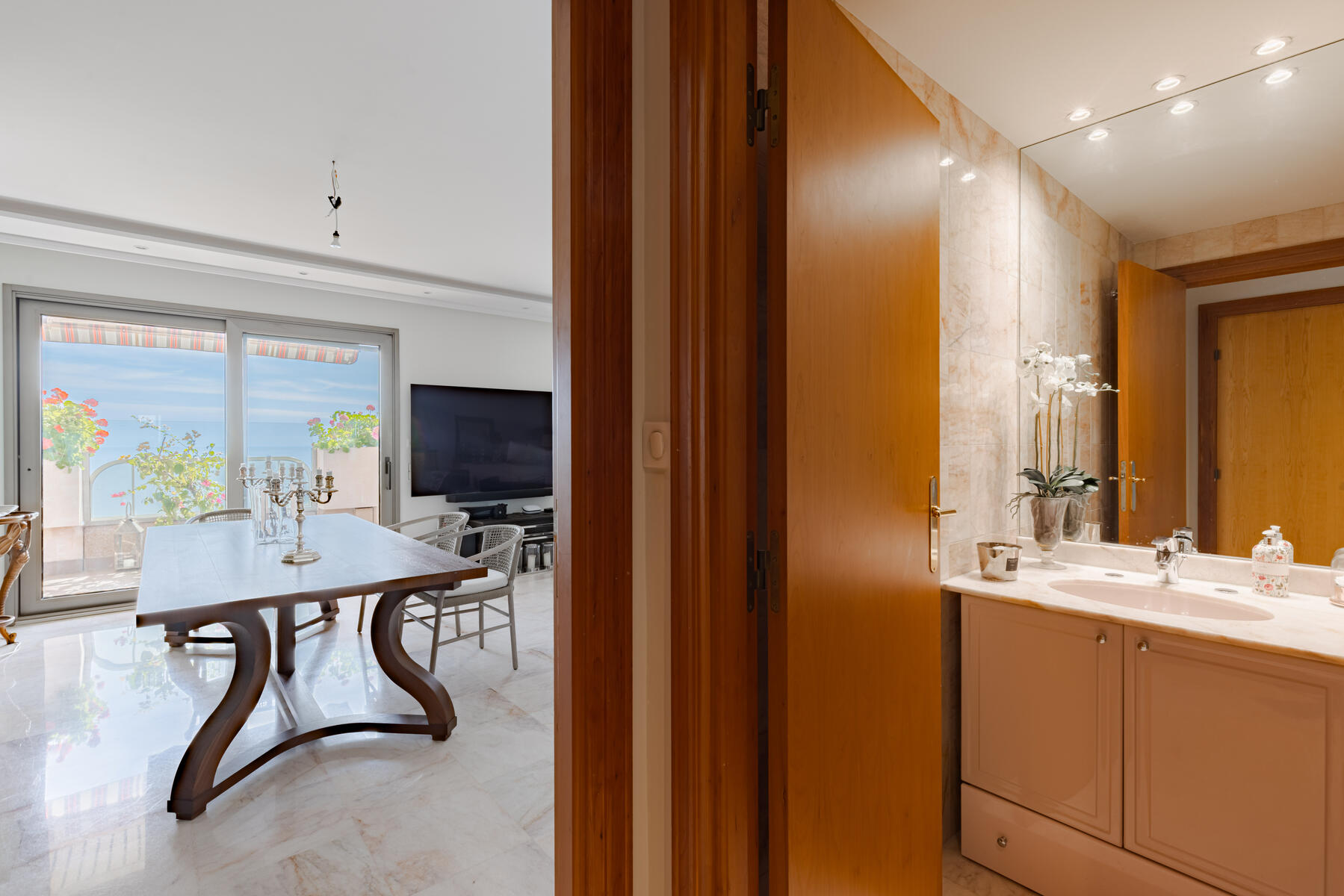 Penthouse exceptionnel à Saint-Roman, niché dans une résidence de prestige avec service de conciergerie. À seulement 5 minutes des plages du Larvotto et du Boulevard des Moulins, il offre un cadre de vie privilégié alliant élégance et proximité des commodités.