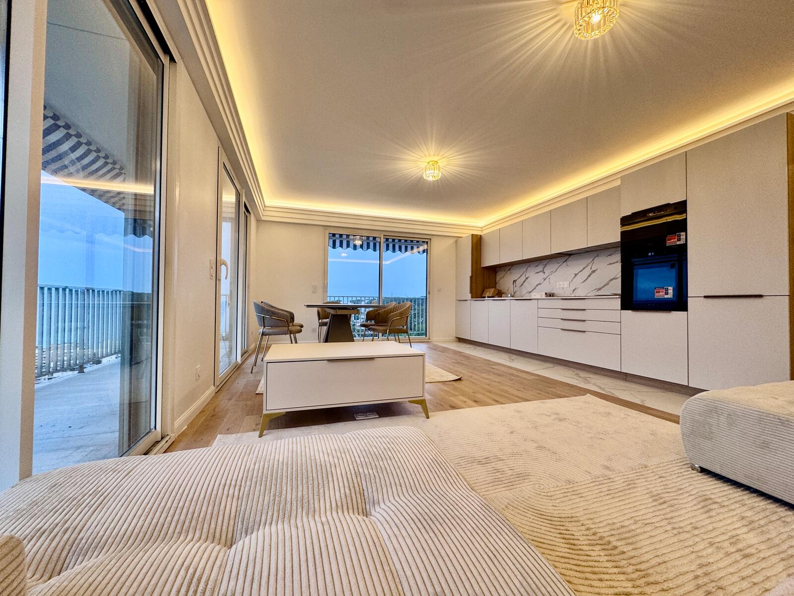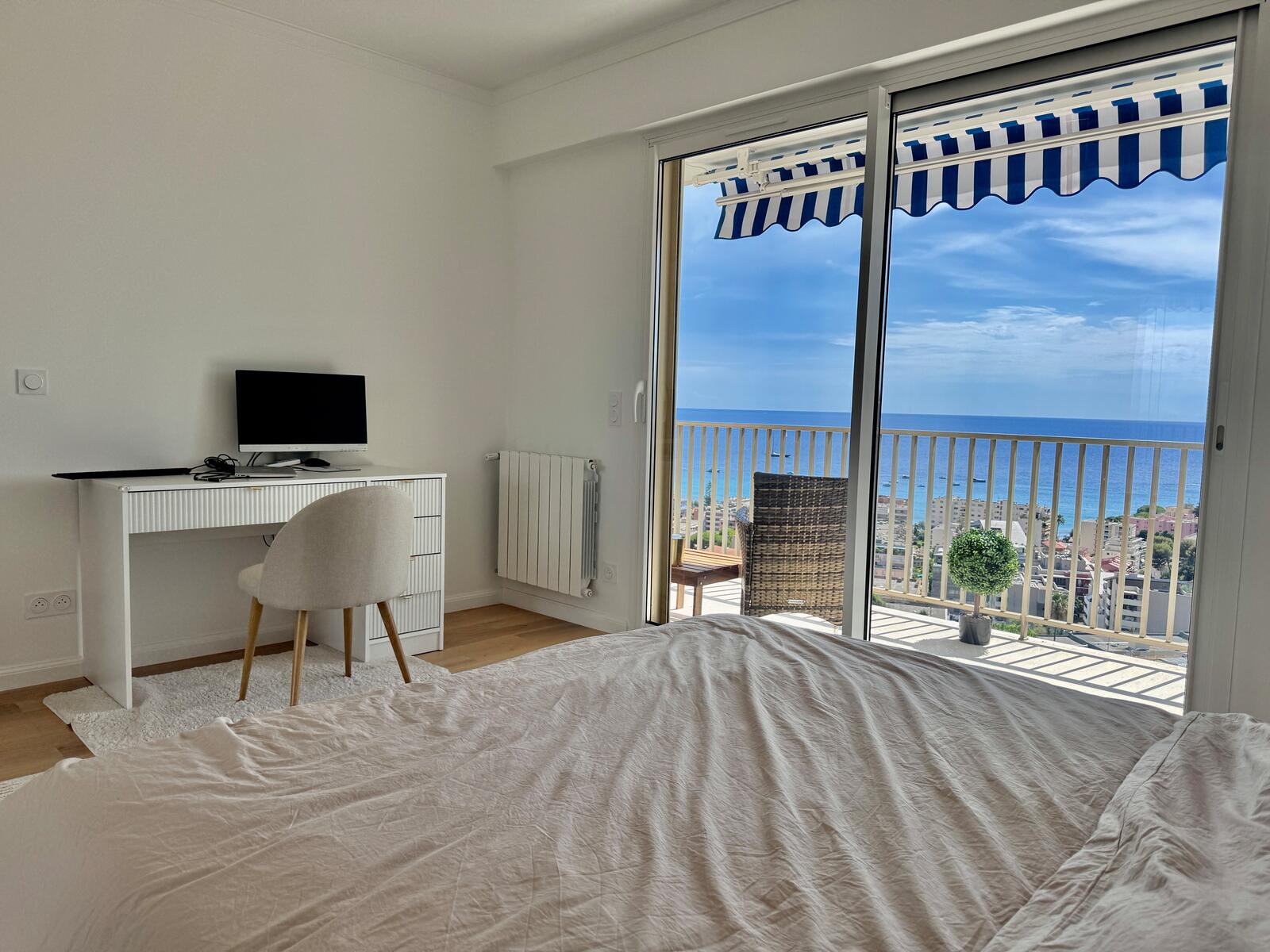 Ce grand appartement lumineux se distingue par ses volumes généreux et sa belle vue mer. Il se compose comme suit :
