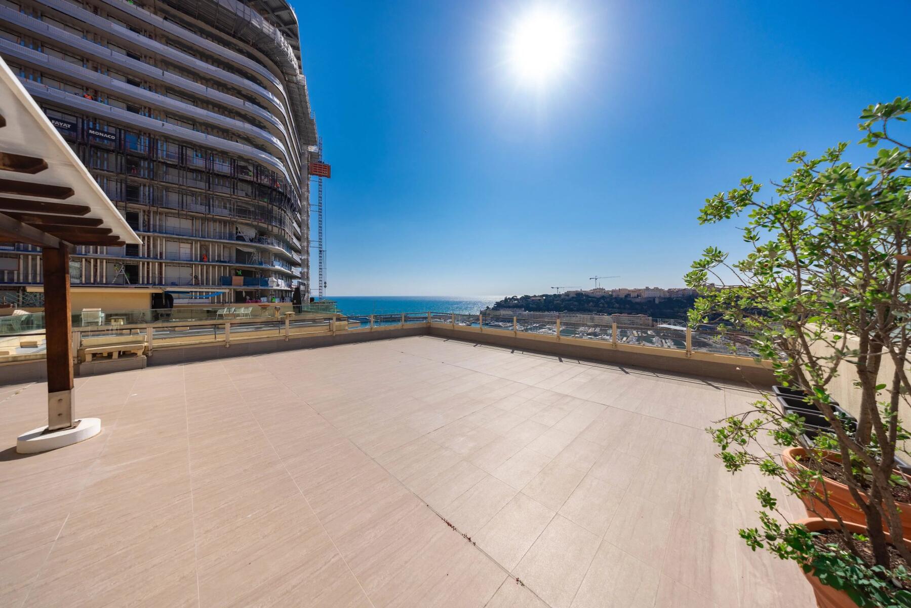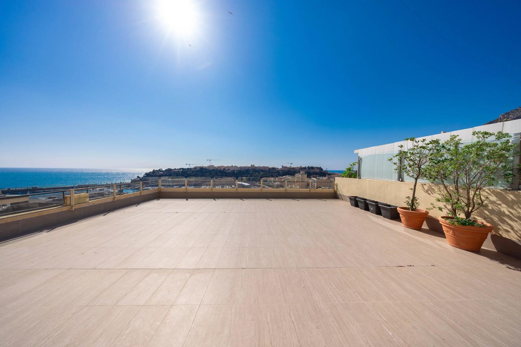 Son exceptionnel toit-terrasse privatif de 140 m², exposé plein sud, constitue un véritable atout. Véritable loge privée dominant Monaco, il offre un point de vue unique pour vivre le Grand Prix de Formule 1 au cœur de l’événement, dans un cadre exclusif, tout en étant idéal pour recevoir famille et invités.