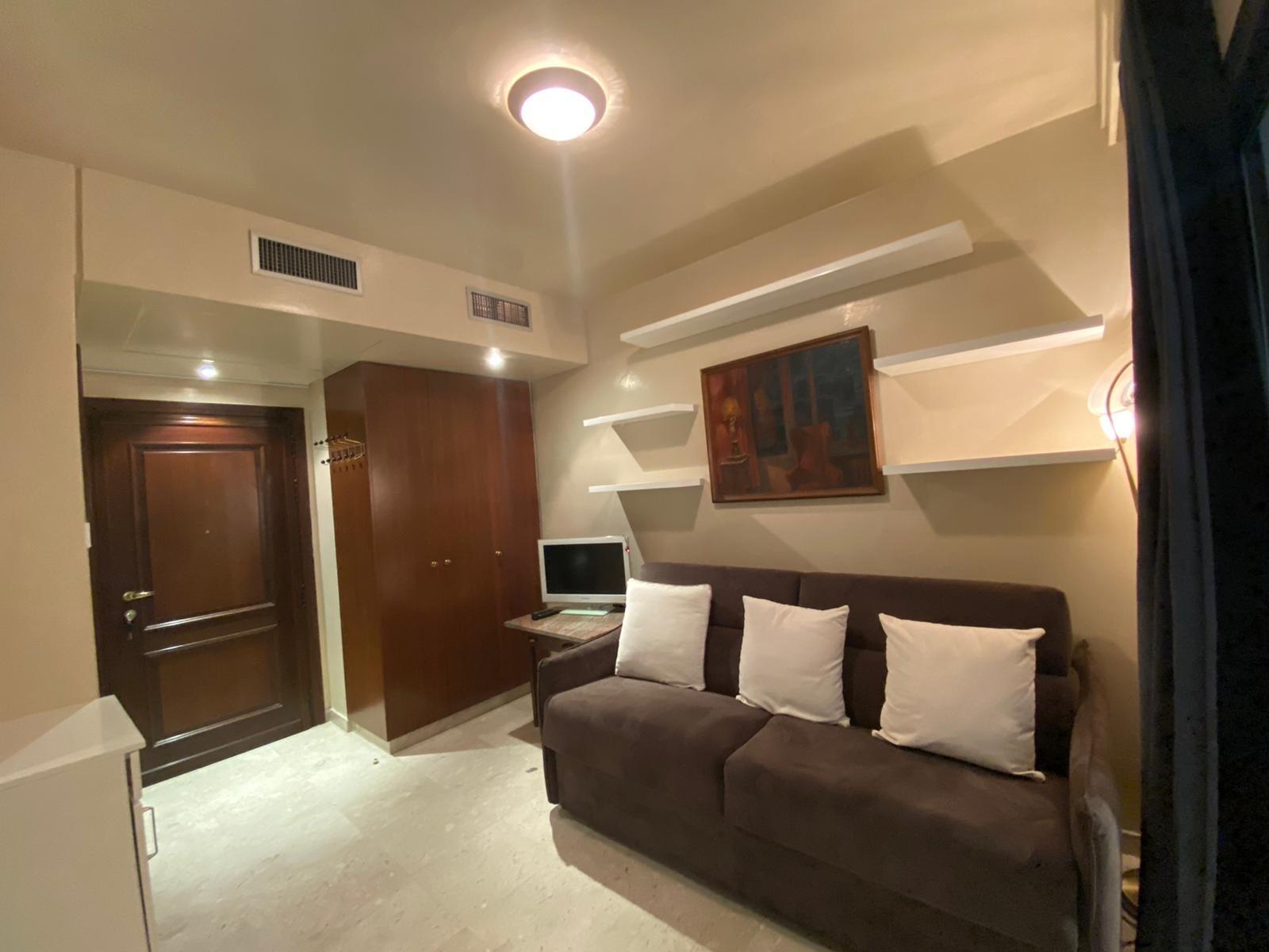 L'appartement est composé d'un séjour avec canapé-lit double, une cuisine ouverte équipée, une grande salle de bains en marbre avec baignoire et douche, et dispose de la climatisation réversible.