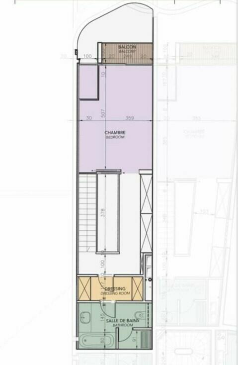 Niveau supérieur : Une grande chambre de 18.20m² donnant accès à un balcon, dressing et salle de bains