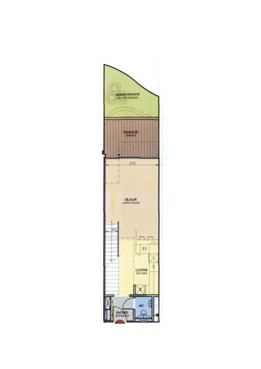 Très grand duplex de deux pièces principales avec jardin privatif situé dans l'emblématique quartier de la condamine.