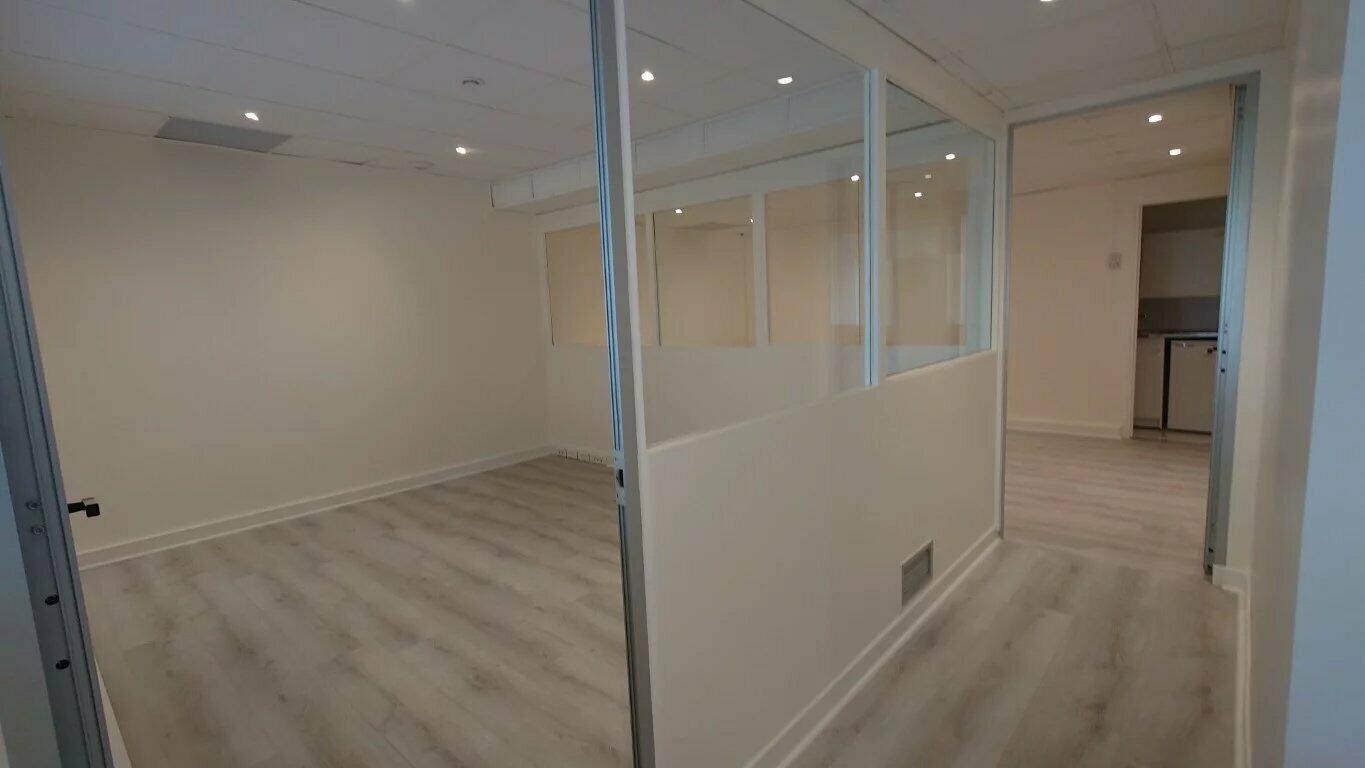 D'une superficie de 62.5 m², il est composé d'une pièce principale divisée en 3 bureaux vitrés et cloisonnés, un coin kitchenette ainsi que des toilettes.