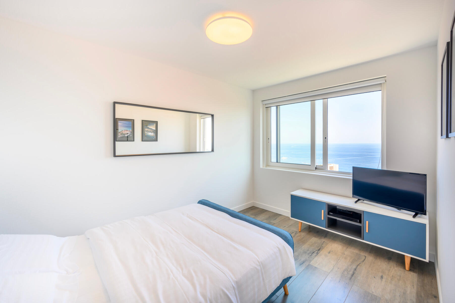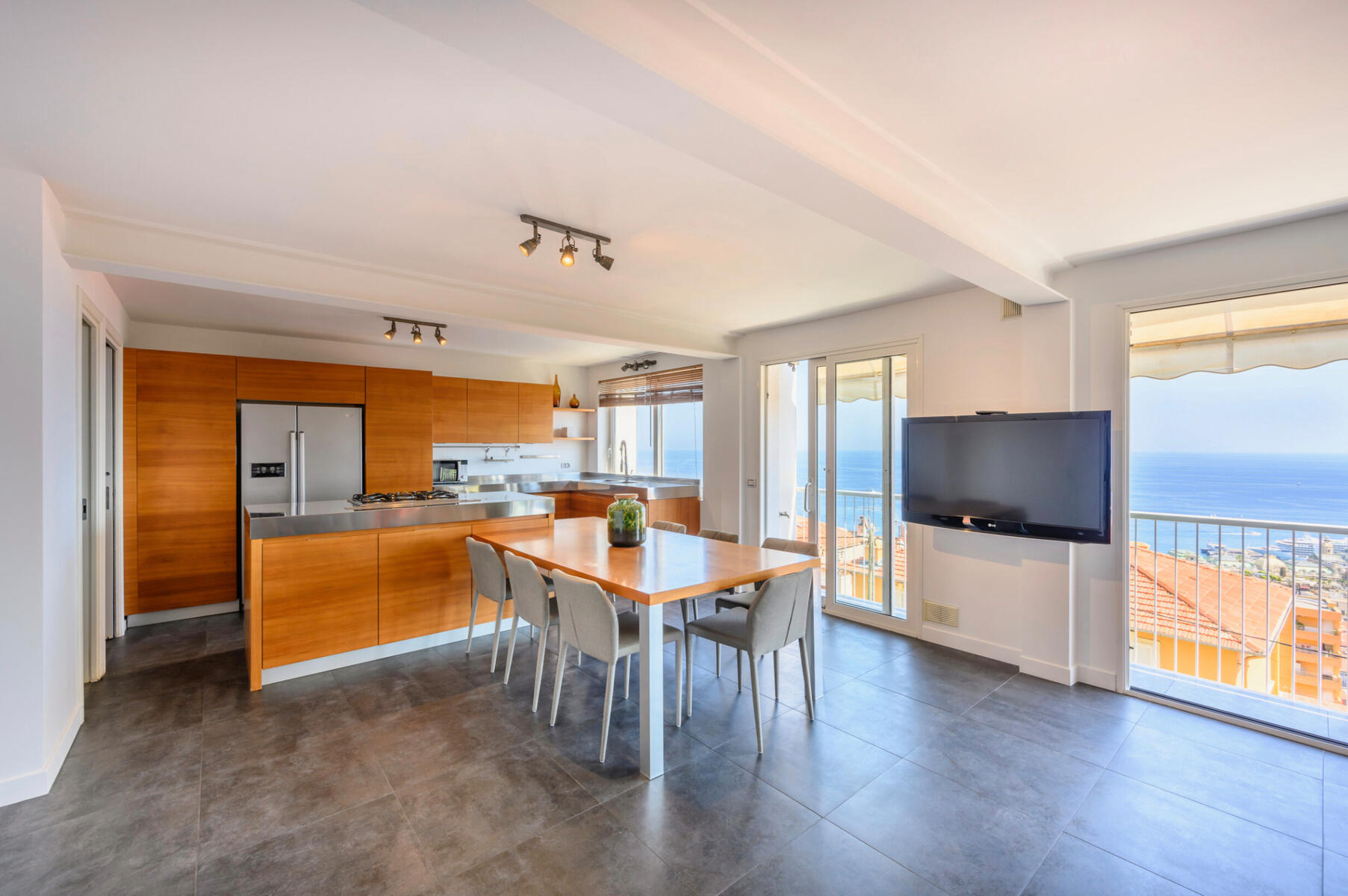 Bénéficiant d'une exposition plein sud, l'appartement offre un ensoleillement optimal ainsi qu'une vue panoramique imprenable sur la mer et Monaco.