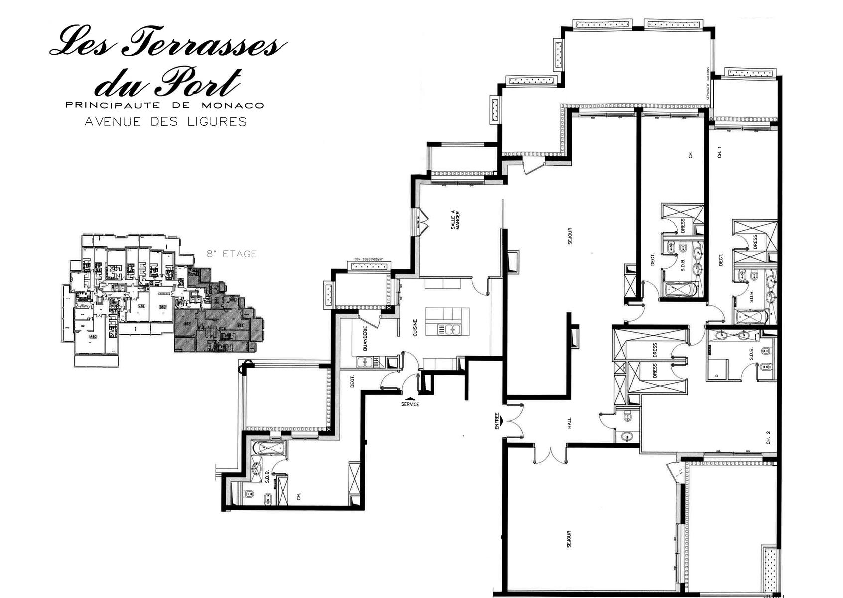 L'appartement situé en étage élevé se compose comme suit: un spacieux hall d'entrée avec vestiaire, un toilettes invités, un majestueux salon ouvert sur une terrasse, un salon avec coin bureau et terrasse, une salle à manger, une cuisine équipée et aménagée avec loggia et buanderie, trois chambres avec dressing et salle de bains complètes, une chambre de service avec salle de bains et terrasse.