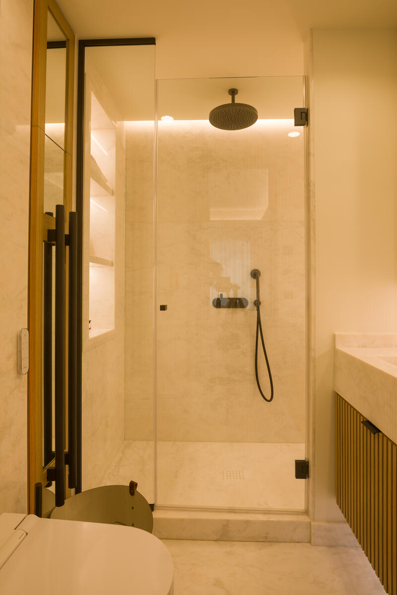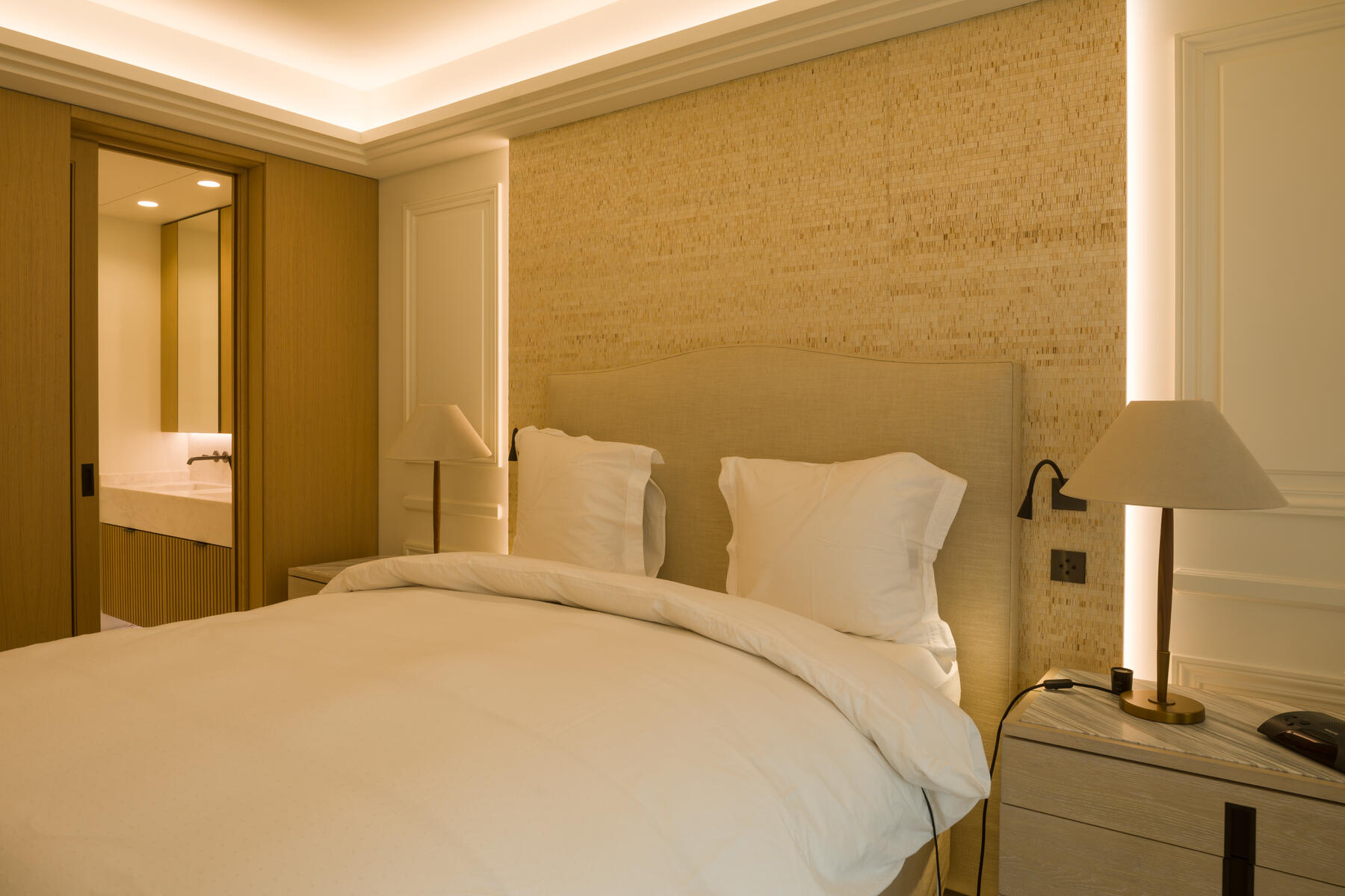 L’appartement dispose de deux chambres élégantes, chacune aménagée en suite avec sa propre salle de bain. La suite parentale, quant à elle, se distingue par son vaste dressing, parfait pour un rangement optimal. Un toilette invité est également prévu pour plus de commodité.