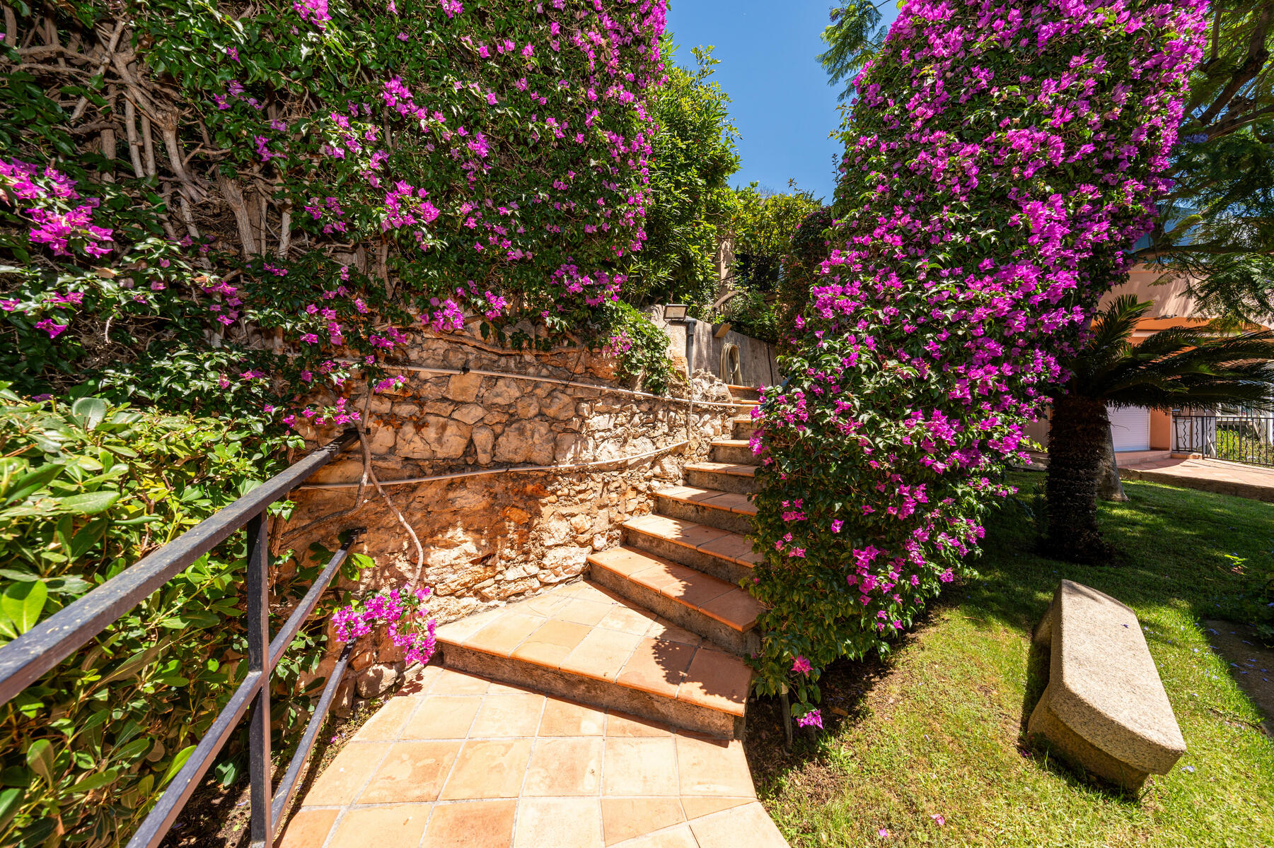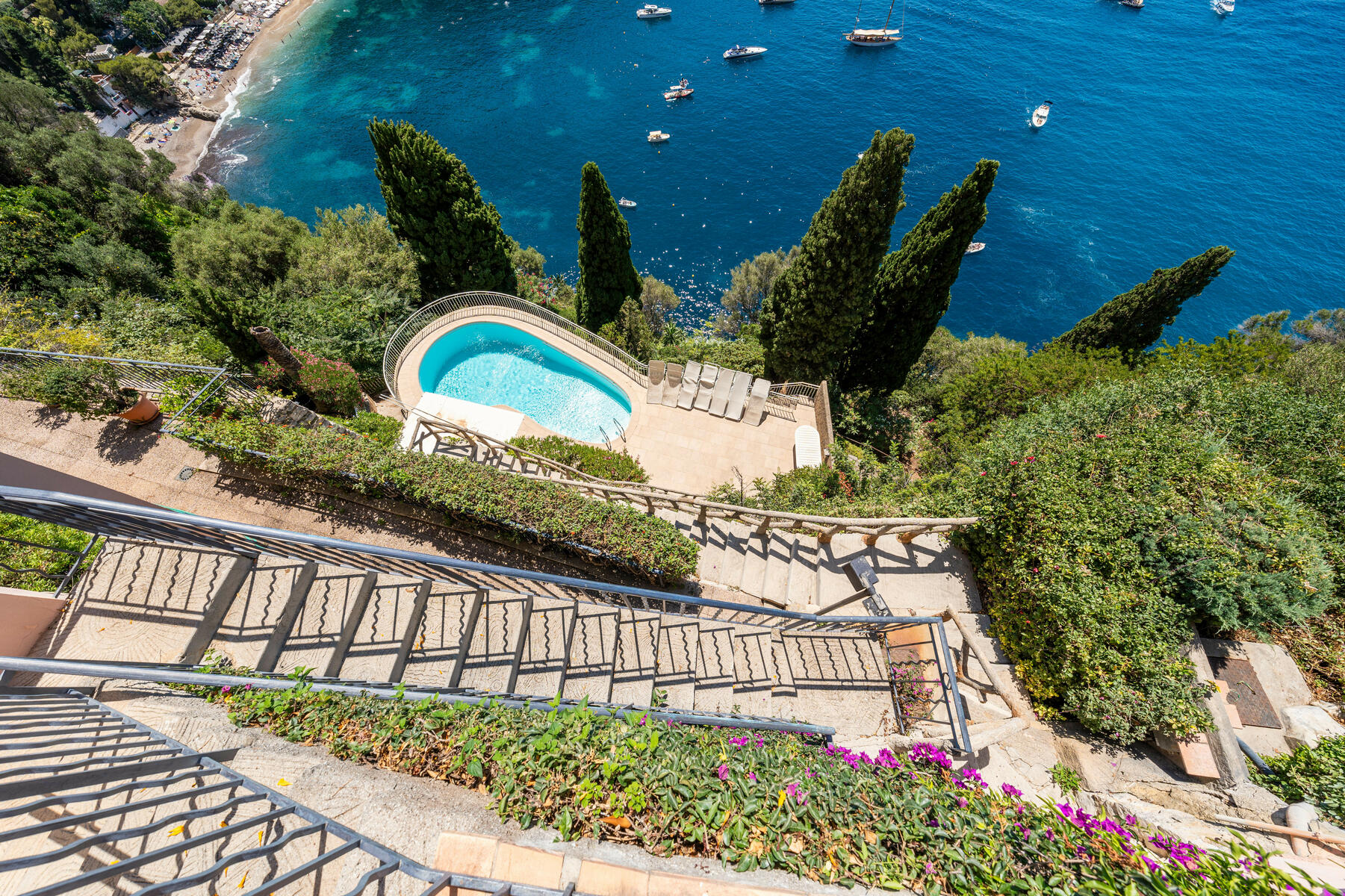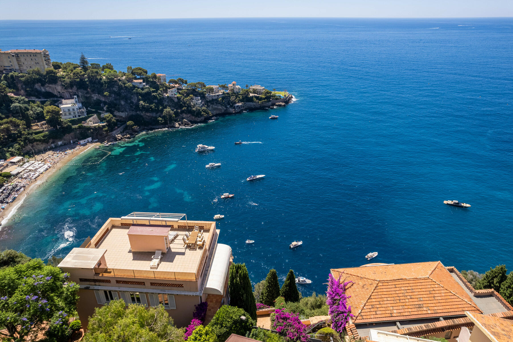 Le toit privé d'une surface d'environ 140m2, agrémenté d'une cuisine d'été, est un véritable havre de paix offrant une vue à couper le souffle sur la mer.