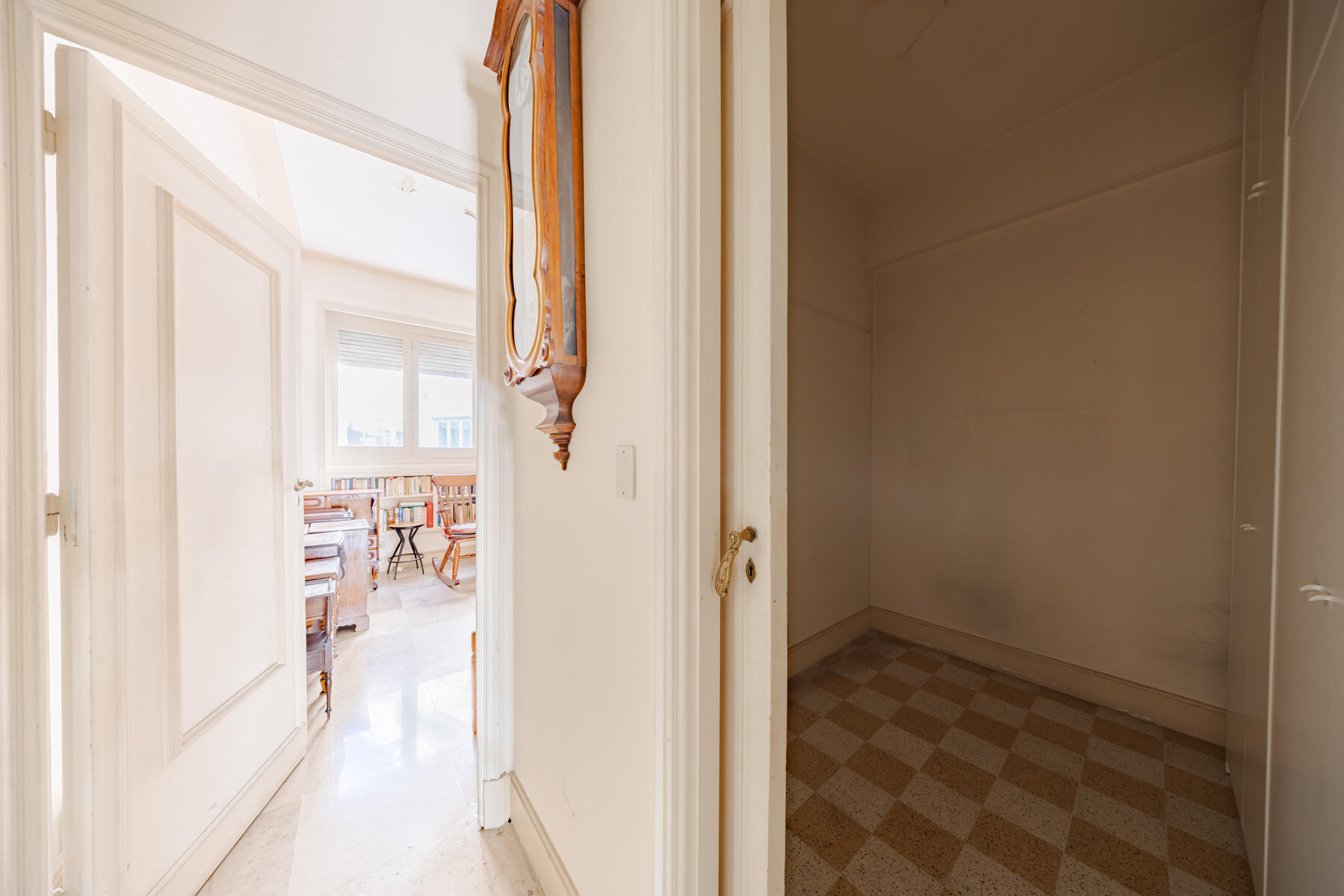 Avec une surface totale de 130,50 m², dont 120,50 m² habitables et une terrasse privée de 10 m², l’appartement offre de beaux volumes et des plafonds atteignant jusqu’à trois mètres de hauteur. Il se compose actuellement d’un séjour lumineux avec accès à la terrasse, d’une cuisine indépendante, d’une chambre principale avec accès direct à la terrasse, d’une seconde chambre, d’une salle de bains, d’une salle de douche, d’un débarras et de nombreux rangements intégrés. Une place de parking et une cave complètent ce bien rare.