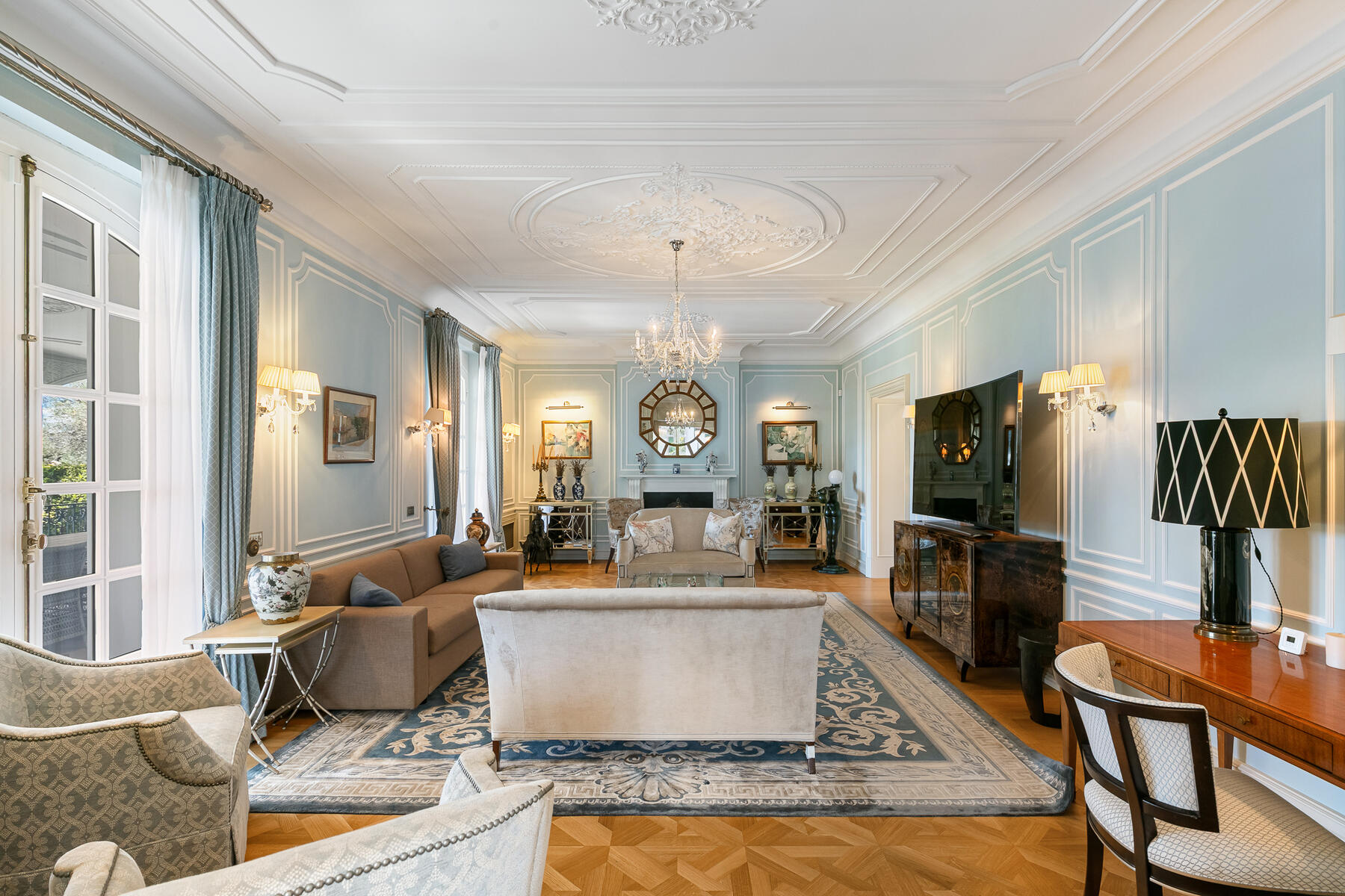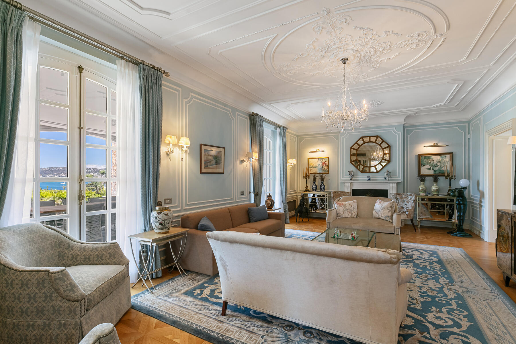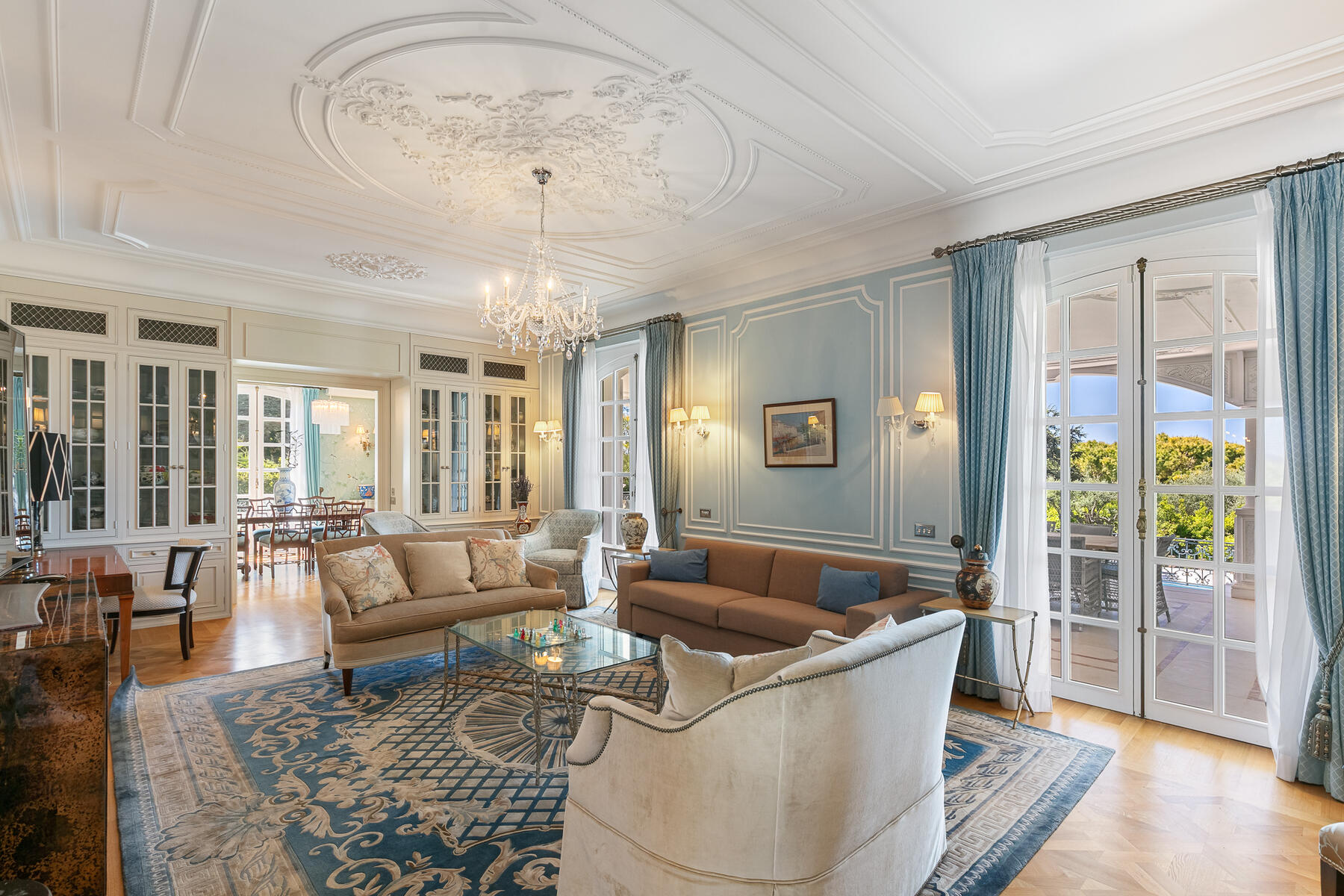 À l’extérieur, la propriété est agrémentée d'une grande terrasse de 65 m², d’une piscine chauffée, d'une rotonde russe unique en son genre et de nombreux espaces propices à la détente sous le ciel azuréen. Un local technique et une aire de stationnement pour 5 à 6 véhicules complètent ce bien d'exception.