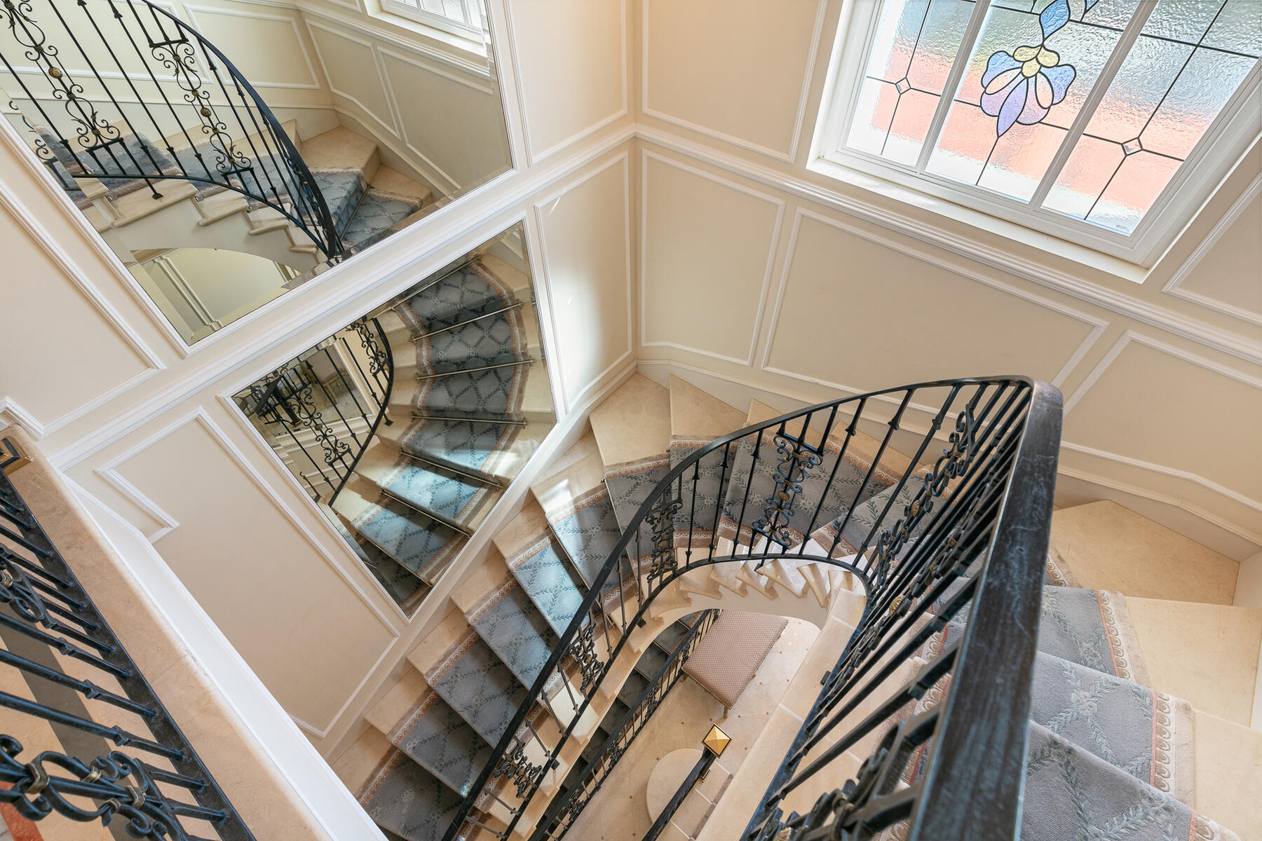 La villa propose, en rez-de-jardin surélevé, un couloir, deux chambres chacune avec salle d'eau attenante et WC, un espace de loisirs avec salle de cinéma, divers espaces de rangements et de service dont lingerie, dressing, WC. un logement annexe invités, comprenant un séjour, une chambre et une salle d'eau. Un logement annexe de service comprenant une chambre, une cuisine et une salle d'eau. Le rez-de-chaussée accueille un salon lumineux avec cheminée, une salle à manger ouvrant sur une vaste terrasse, une cuisine familiale également connectée au jardin, un WC invités, ainsi qu'une chambre avec sa salle d’eau et son WC privatifs. À l’étage, un large palier avec dressing dessert la suite principale bénéficiant d’une terrasse vue mer et d’une salle de bains complète (baignoire, douche, double vasque, bidet et WC), ainsi que deux autres chambres disposant chacune de leur salle d’eau et WC attenants.
