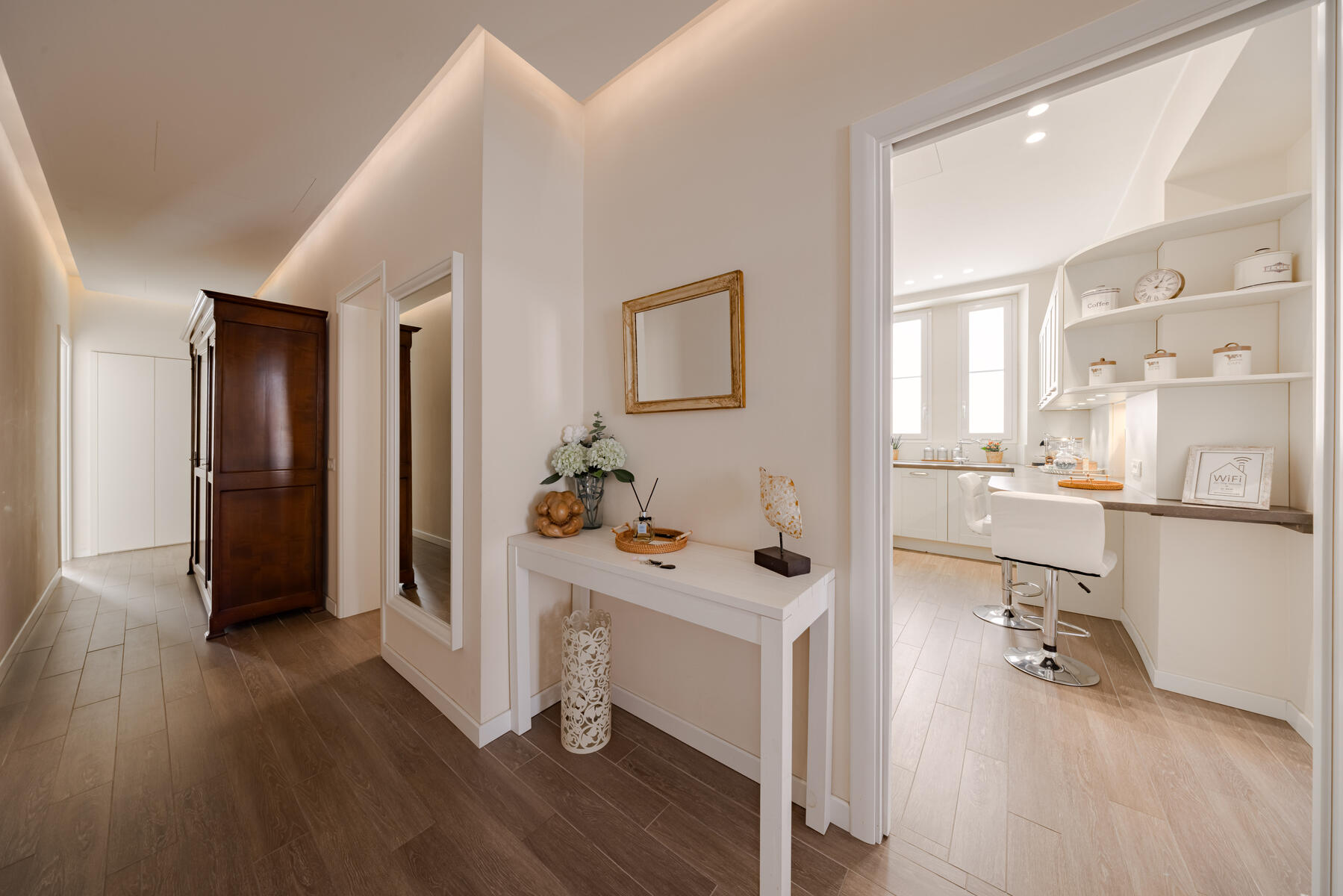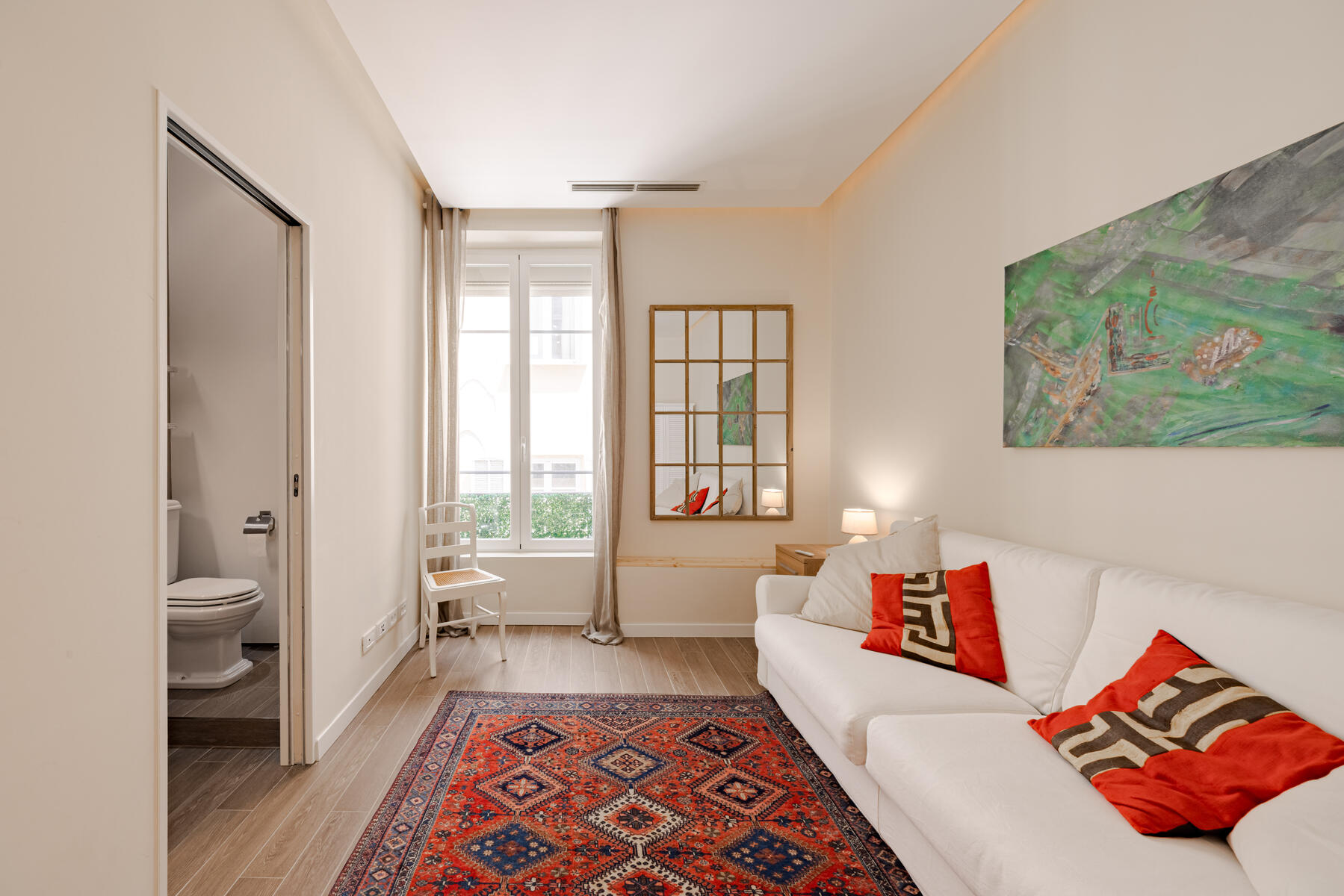 L’un des salons peut facilement être converti en troisième chambre grâce à des portes coulissantes intégrées, offrant ainsi une configuration adaptable selon les besoins.