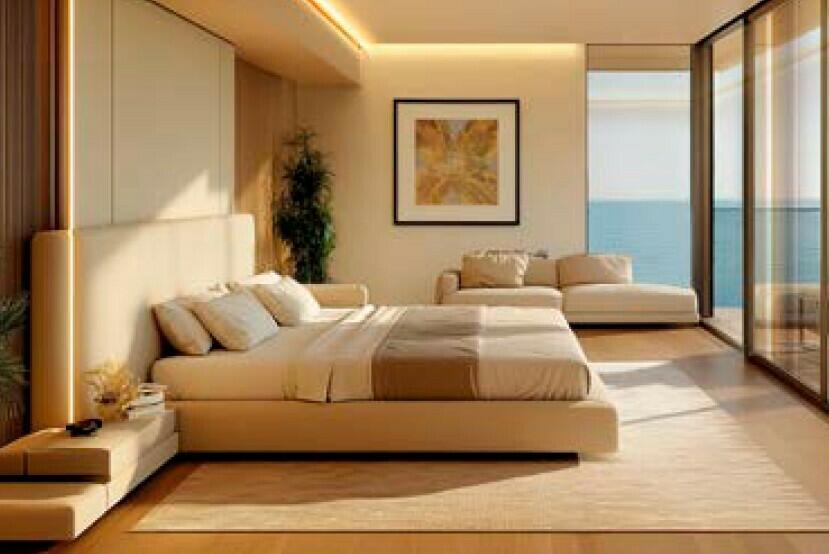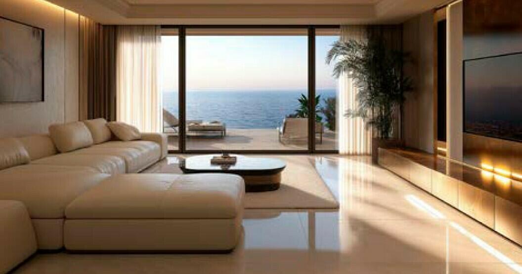 Chaque pièce est inondée d’une lumière douce et s’ouvre sur la mer Méditerranée. L’intérieur se distingue par une élégance sobre, avec des matériaux naturels, des lignes épurées et des finitions haut de gamme qui créent une ambiance chaleureuse et esthétique. La cuisine, la salle à manger et le salon se fondent les uns dans les autres pour former un ensemble fluide, ouvert et fonctionnel.
