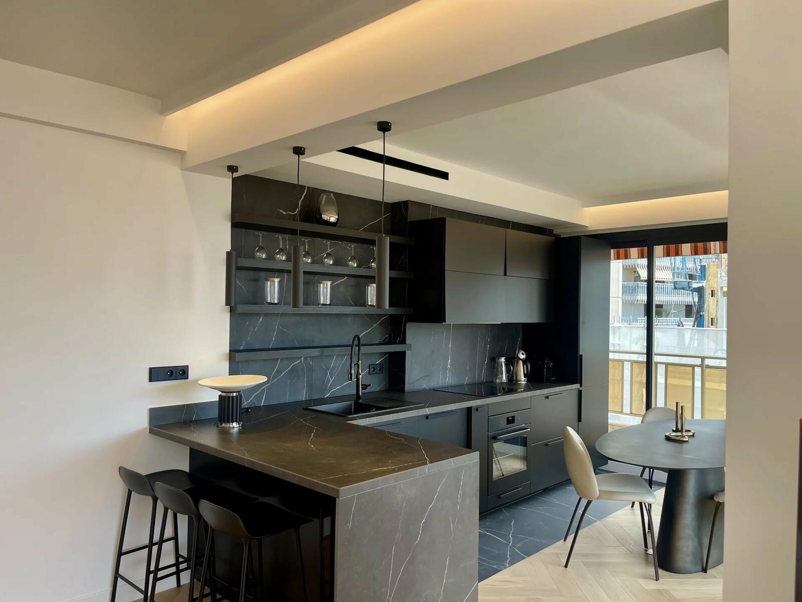 Cet appartement de 132 m2 situé en étage élevé offre une belle vue sur les toits de la principauté et une échappée mer. Il a été totalement restructuré et rénové, il comprend un beau séjour, une cuisine entièrement équipée ouvrant sur une terrasse, une grande chambre disposant de nombreux espaces de rangement, avec sa salle de douche, une deuxième chambre, avec une spacieuse salle de douche avec WC et des toilettes invités.