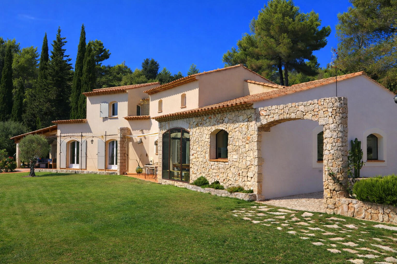 Un vaste espace d'accueil avec haut-vent permet de stationner plusieurs véhicules et s'ouvre sur le jardin de 2 600 m². La maison comprend également un garage fermé, une cave à vin et une salle de projection.