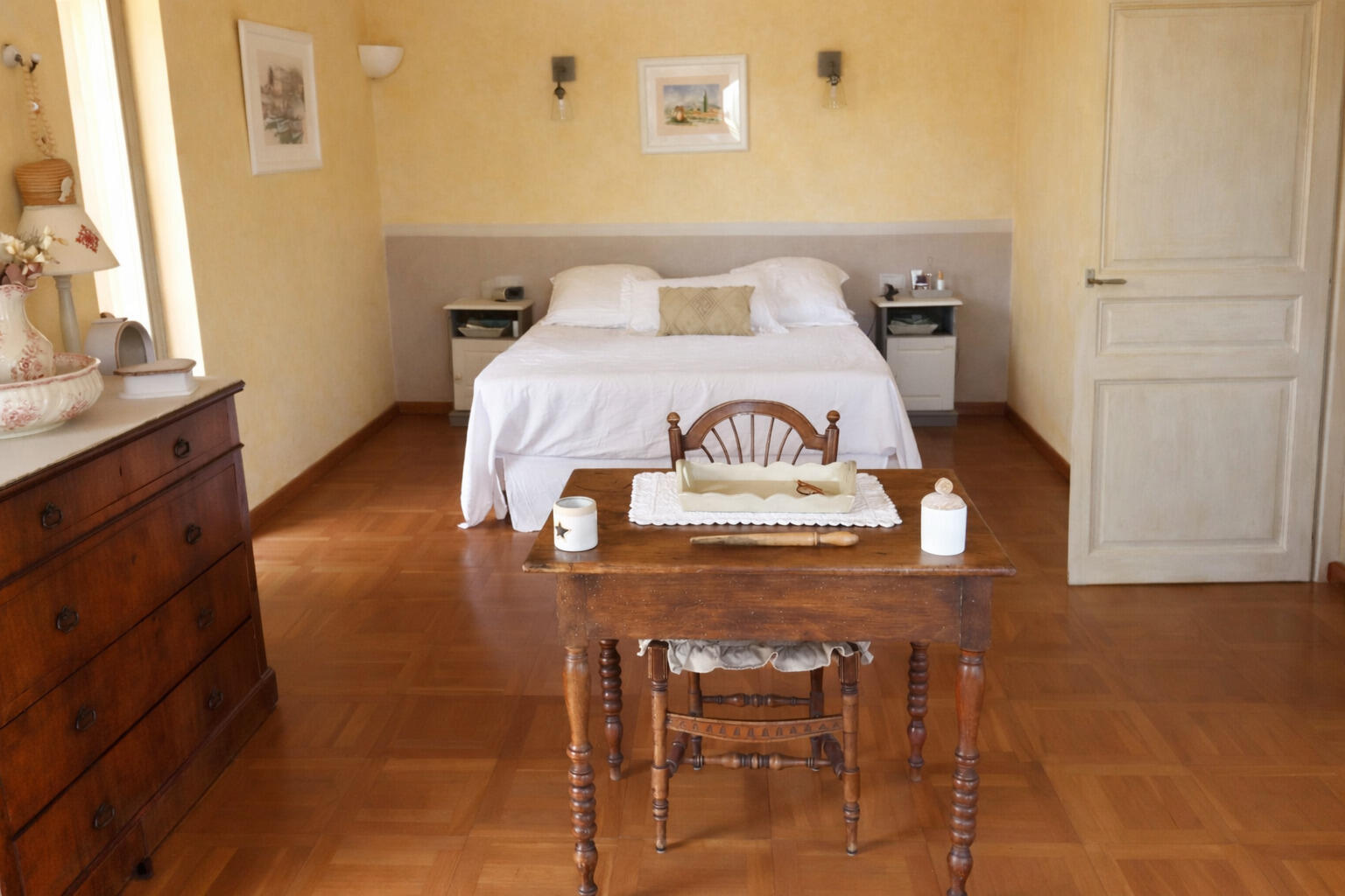 - En contrebas, un terrain de pétanque complète cet environnement méditerranéen, ponctué de lavandes et d'oliviers.