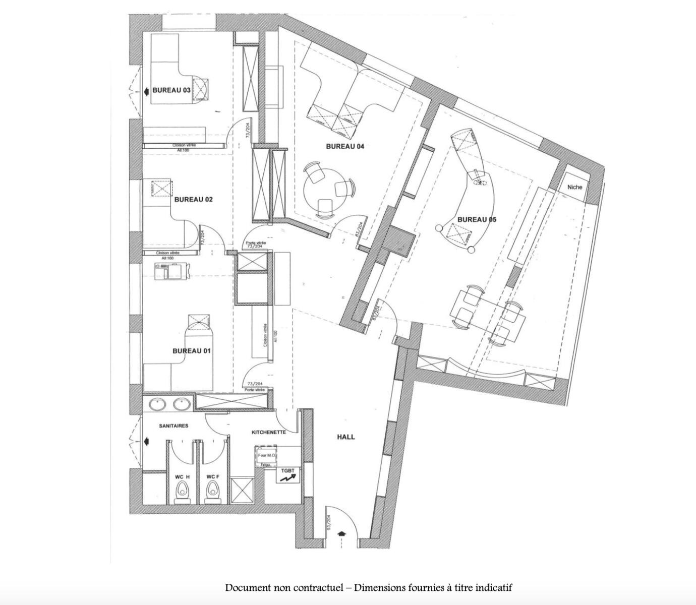 - 5 salles de bureau
