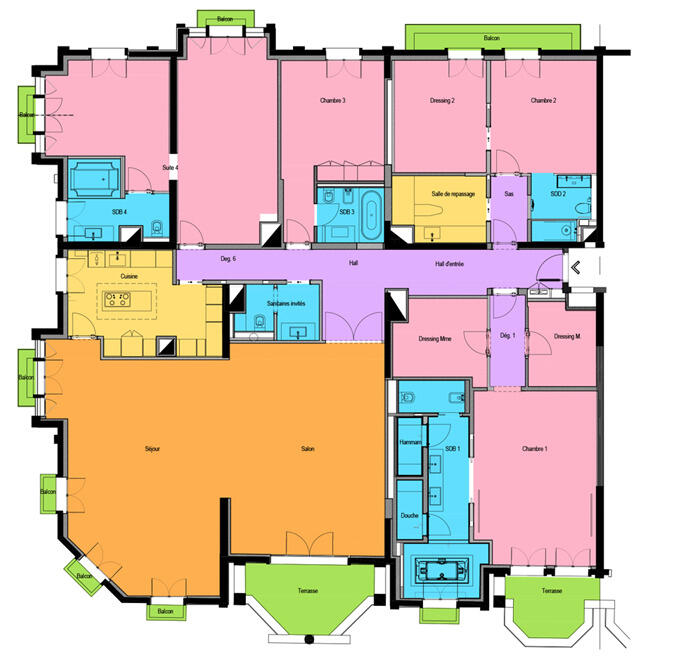 - 4 chambres dont 2 suites, chacune avec salle d’eau et toilettes attenantes.
