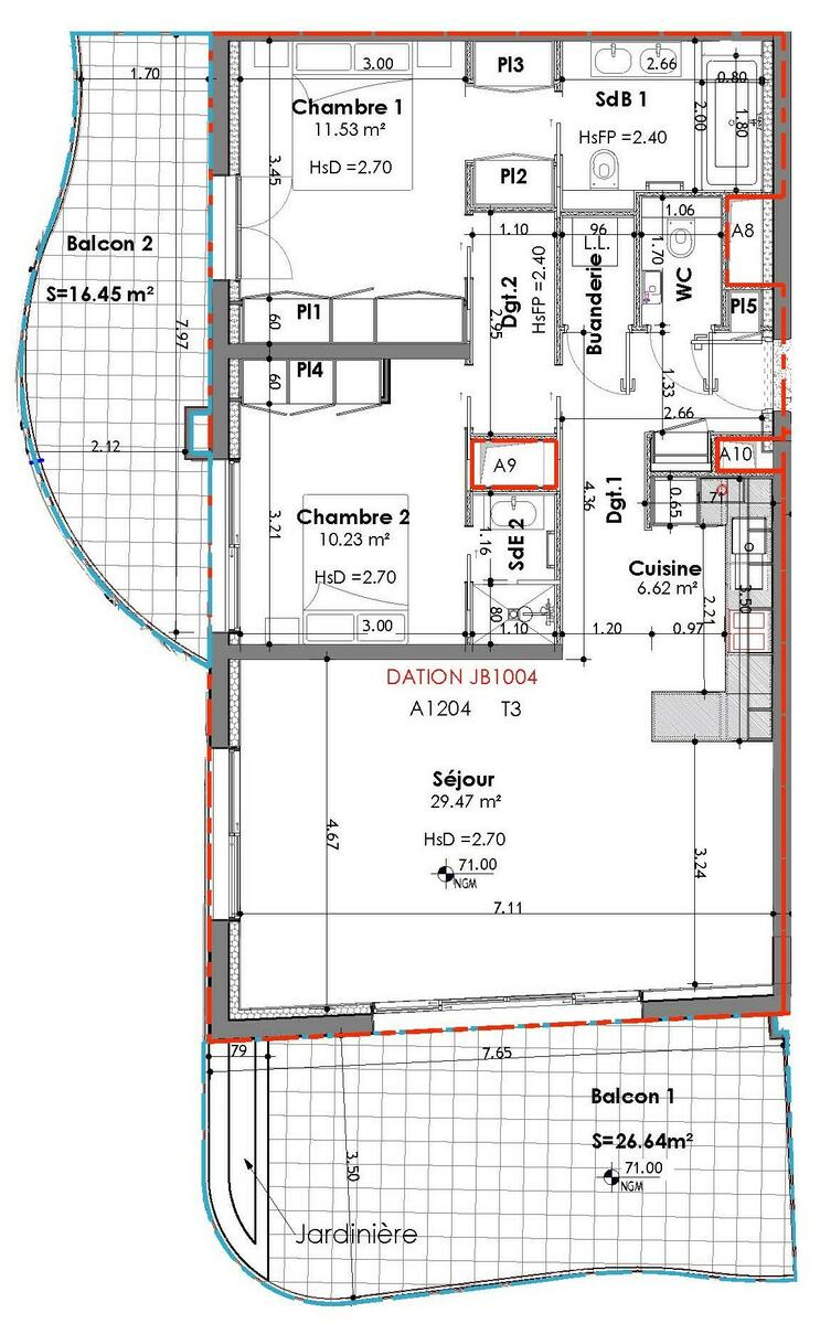Ce 3 pièces à la vente, situé au 12ᵉ étage du Bâtiment A, se compose d’un séjour/salle à manger ouvrant sur un balcon (exposé Sud), d’une cuisine entièrement équipée, de deux chambres ouvrant sur un balcon (exposé Sud-Ouest), une salle-de-bains, salle de douche, d’une buanderie, d’un toilette indépendant et de nombreux rangements intégrés.