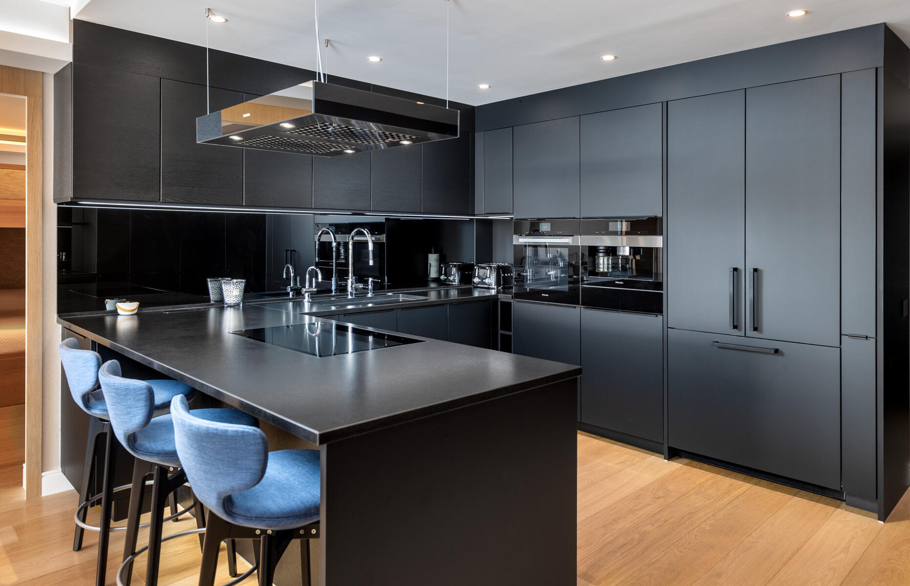 Conçu avec goût et entièrement meublé, l’appartement s’ouvre sur un hall d’entrée accueillant avec rangements sur mesure. L’espace de vie, habillé de parquet en bois, comprend une cuisine équipée d’électroménagers Miele, ouverte sur une salle-à-manger raffiné et un salon élégant. La cuisine dispose notamment d’une plaque à induction, d’un four, d’une machine à café encastrée, d’un grand réfrigérateur-congélateur américain, ainsi que d’un îlot cuisine et d’un bar intégré avec cave à vin.