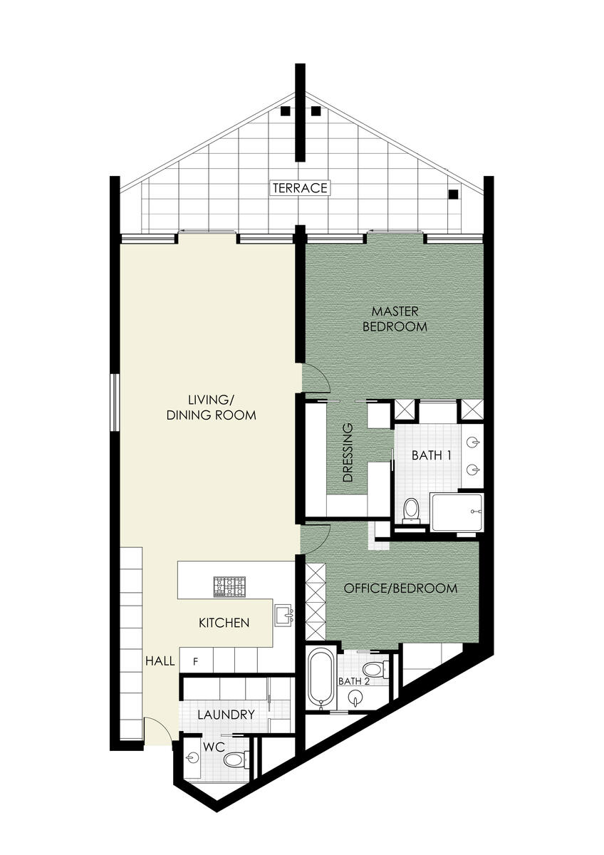 Une seconde pièce, pouvant servir de bureau ou coin nuit, est aménagée avec des grands lits superposés, de nombreux rangements et une salle de bain attenante avec baignoire/douche. L’appartement comprend également une buanderie avec rangements supplémentaires ainsi qu’un WC invité.