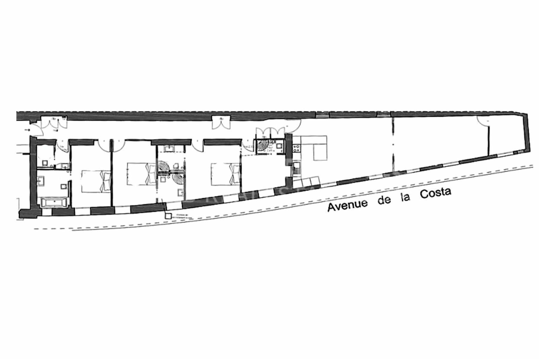 Ce bien offre une surface intérieure de 185 m² et dispose d'une chambre de bonne au même étage. Une grande cave complète ce bien. Appartement soumis à la loi 887.