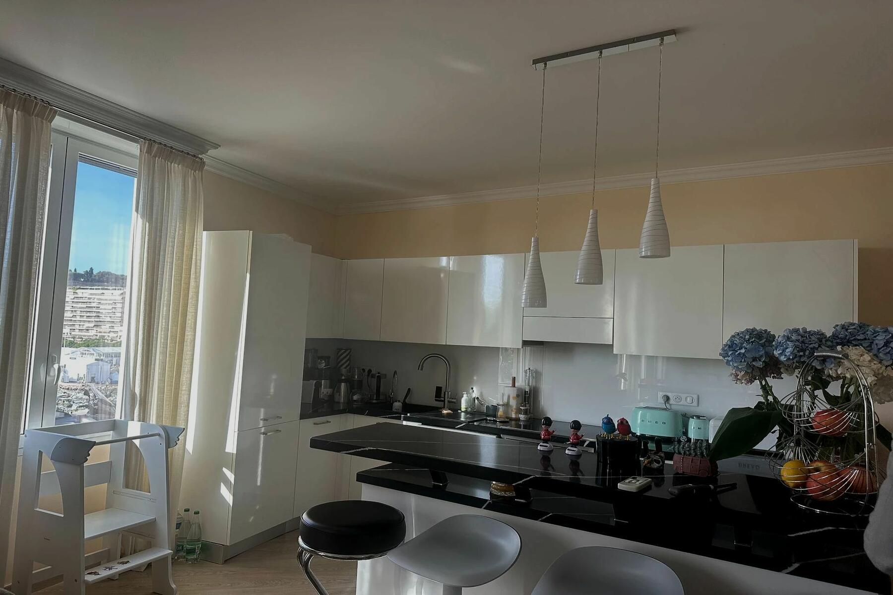 Cet appartement tout en façade, se compose d'une entrée, un dégagement donnant accès au grand séjour avec cuisine intégrée, un salon, une buanderie, un toilette invités, trois chambres, une salle de bain et deux salles de douche.