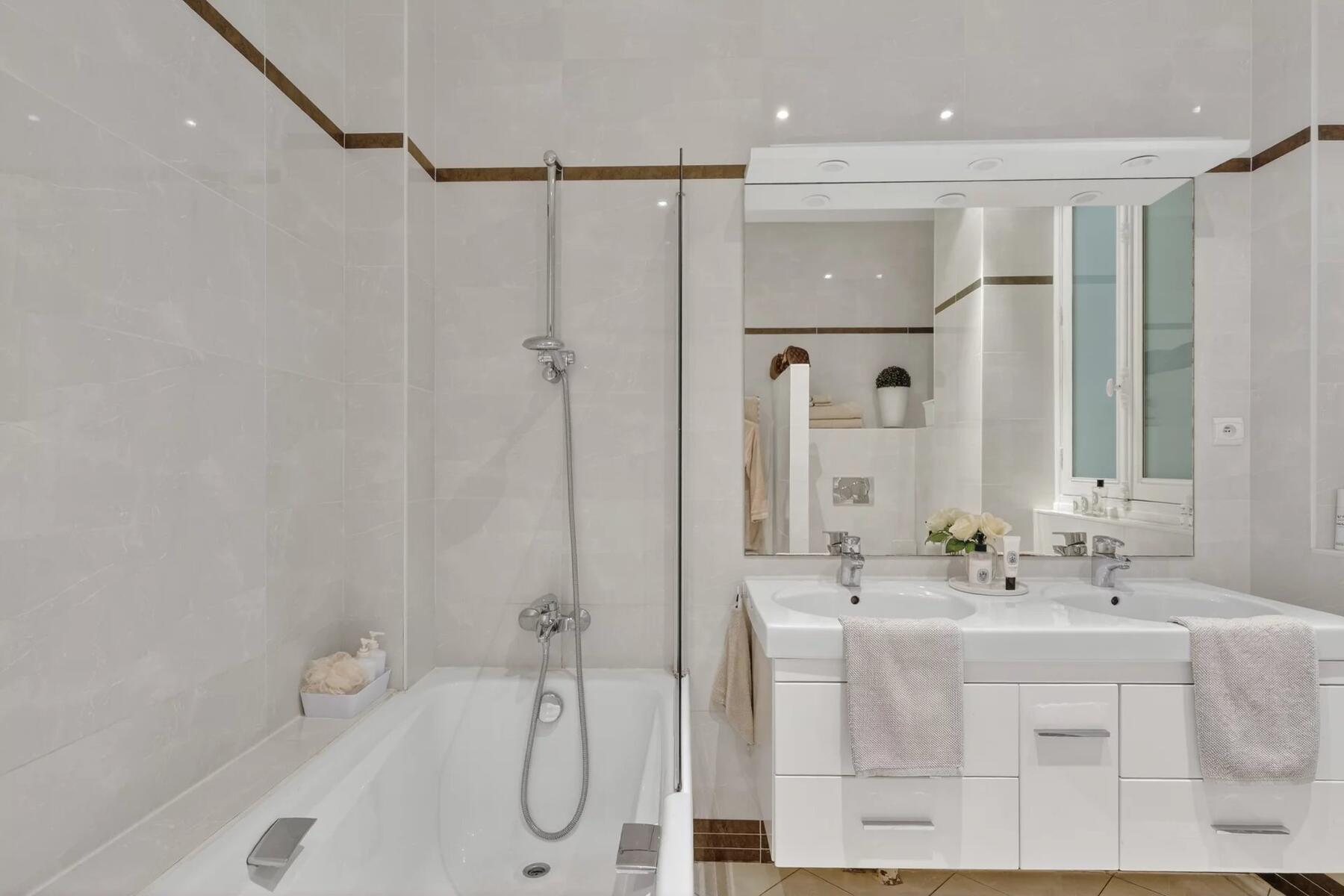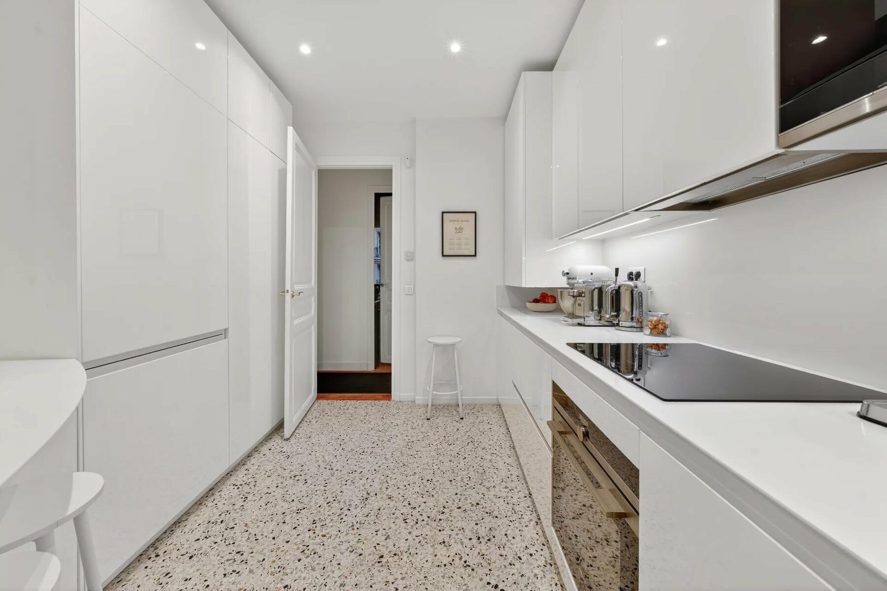 L’appartement se compose d’un salon et d’une salle à manger, de quatre chambres, idéales pour une vie familiale ou de réception, ainsi que d’une cuisine contemporaine, épurée et fonctionnelle, parfaitement intégrée.
