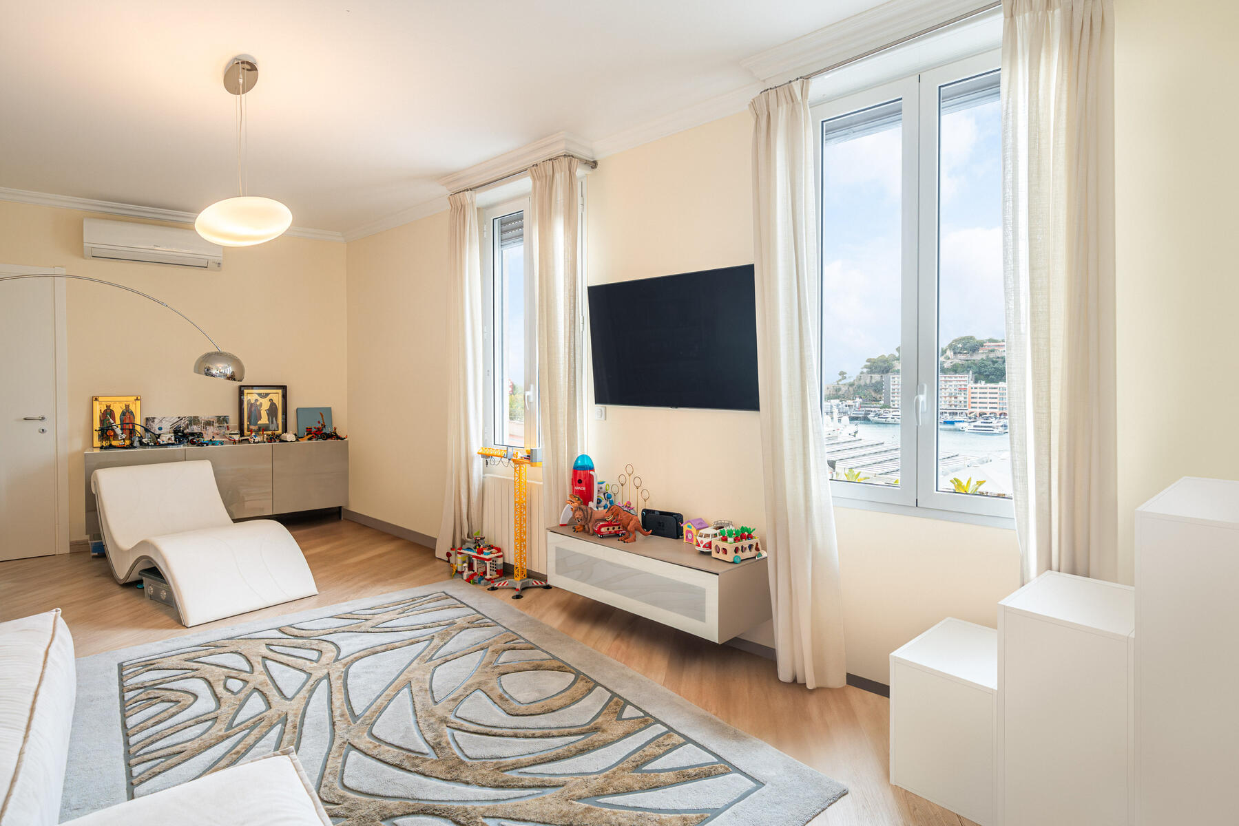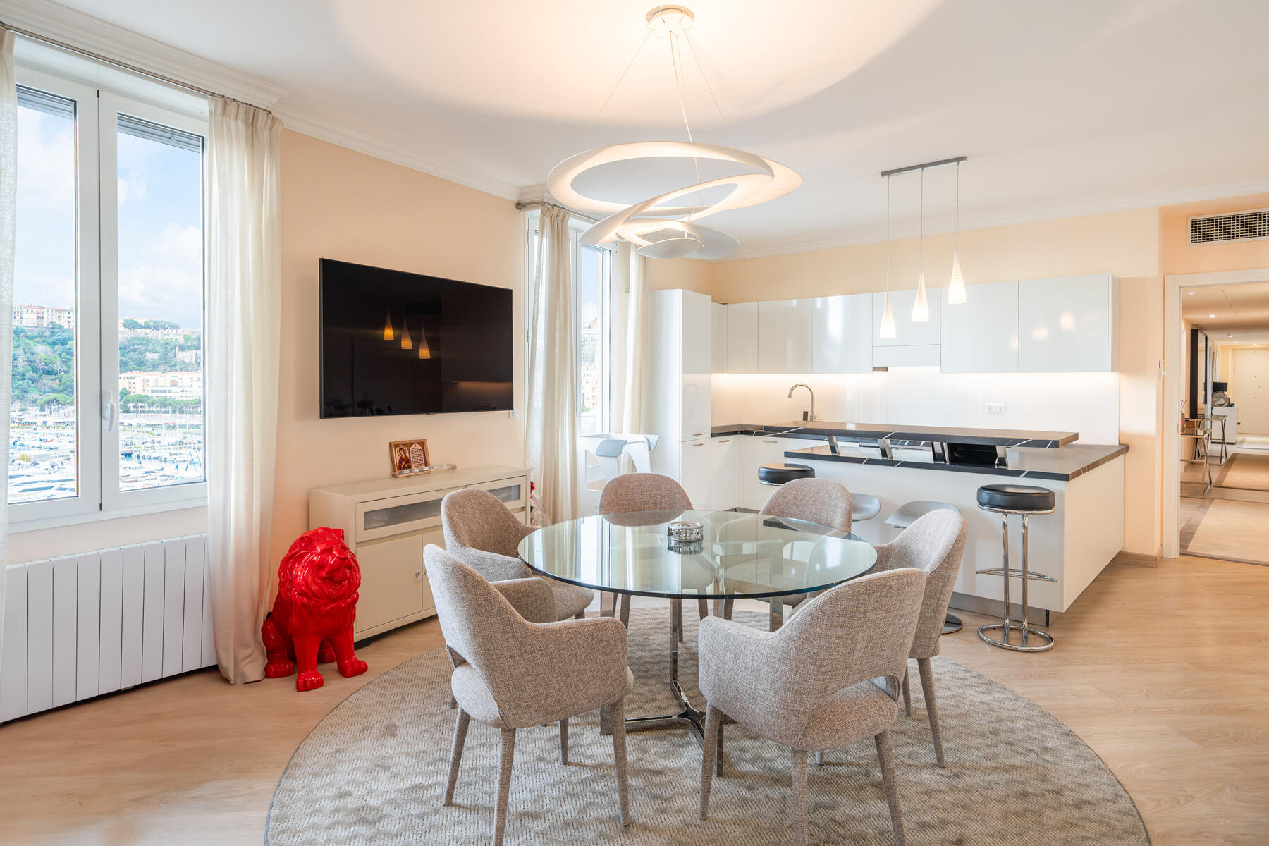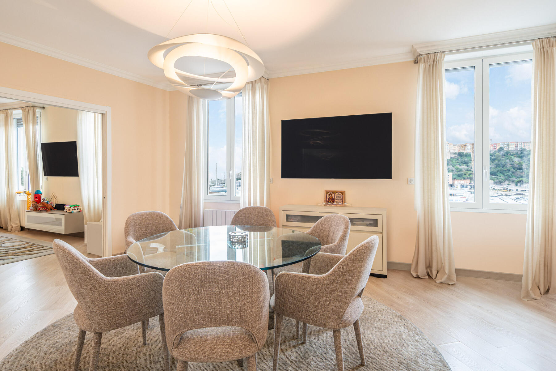 Cet appartement, à usage mixte et sous loi 887, offre un cadre de vie élégant avec une vue sur Port Hercule.