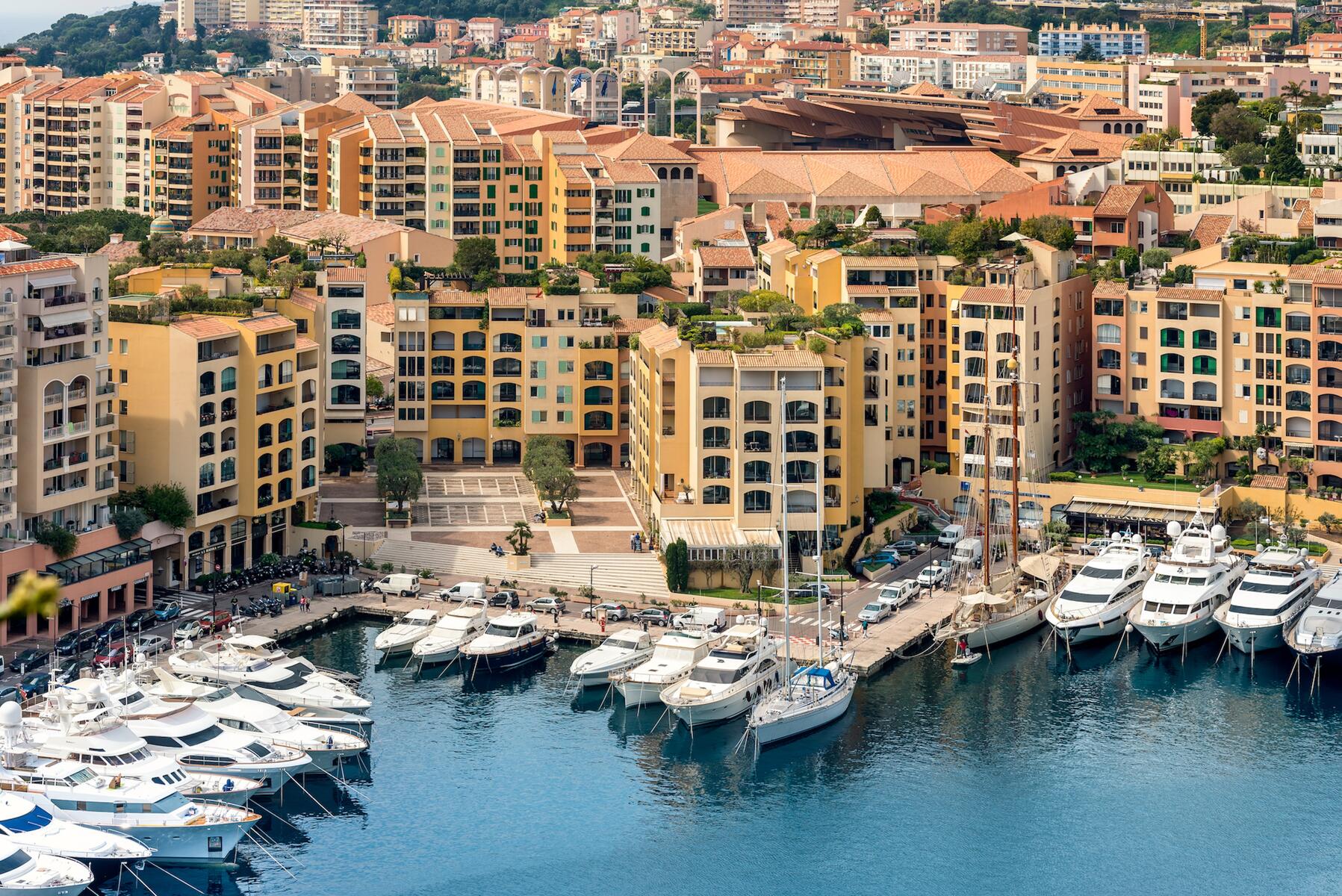 Bureau rénové avec de grandes vitrines dans l’immeuble du Titien, dans le quartier résidentiel de Fontvieille, à proximité du port.