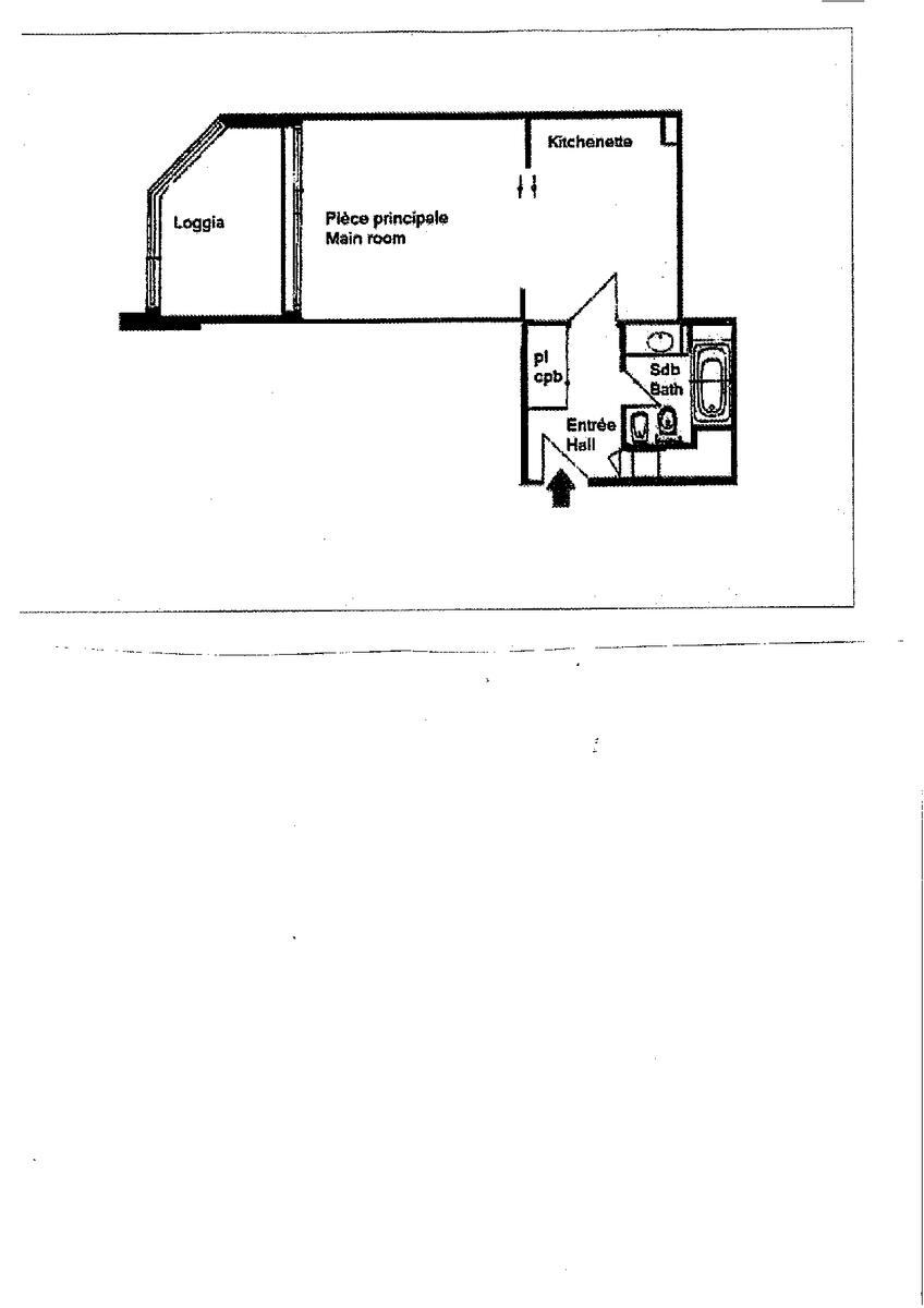 entrée avec placard, un espace cuisine équipée, une pièce principale, une salle de bains, une loggia, une cave, un parking.