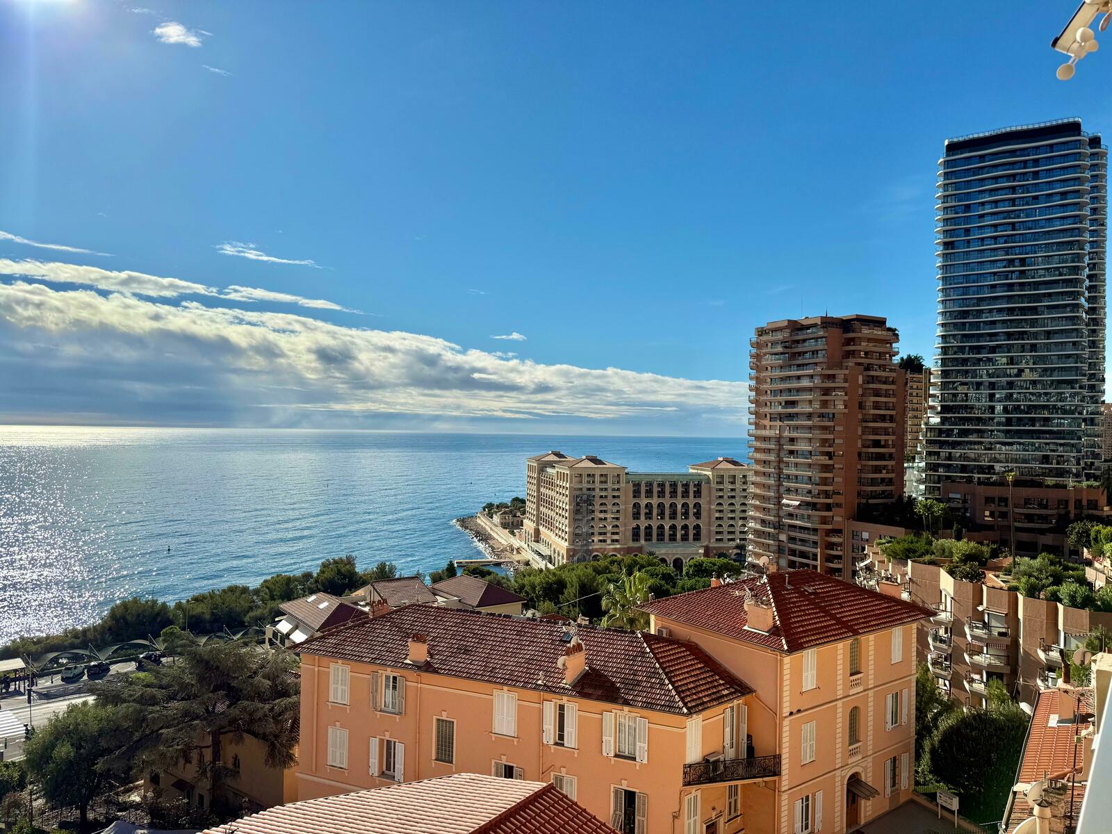 A la Frontière entre Monaco et Roquebrune Cap Martin, spacieux 3 pièces en étage d'un immeuble de standing avec une vue epoustouflante mer et sur le fameux circuit du Monte Carlo Country Club