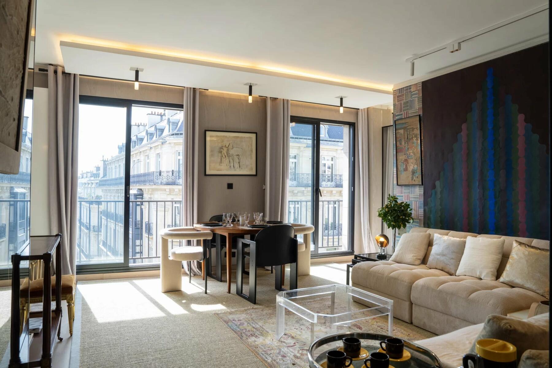 Entièrement rénové avec des matériaux haut de gamme et équipé de mobilier de collection, il offre une vue dégagée sur des monuments emblématiques tels que la Tour Eiffel et la Cathédrale américaine.