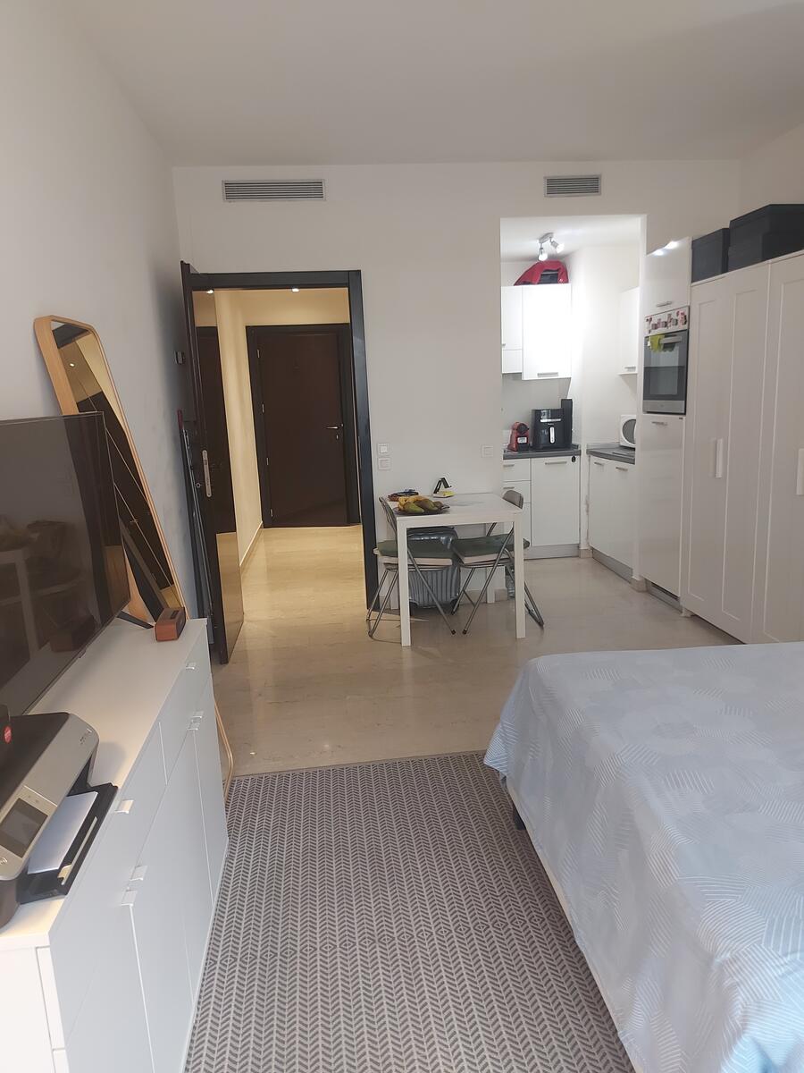 Le studio se compose d’une pièce principale lumineuse avec espace séjour et coin nuit, d’une kitchenette fonctionnelle, d’une salle de bain, ainsi que d’une terrasse fermée offrant un espace supplémentaire idéal pour un bureau, un coin détente ou un espace repas.
