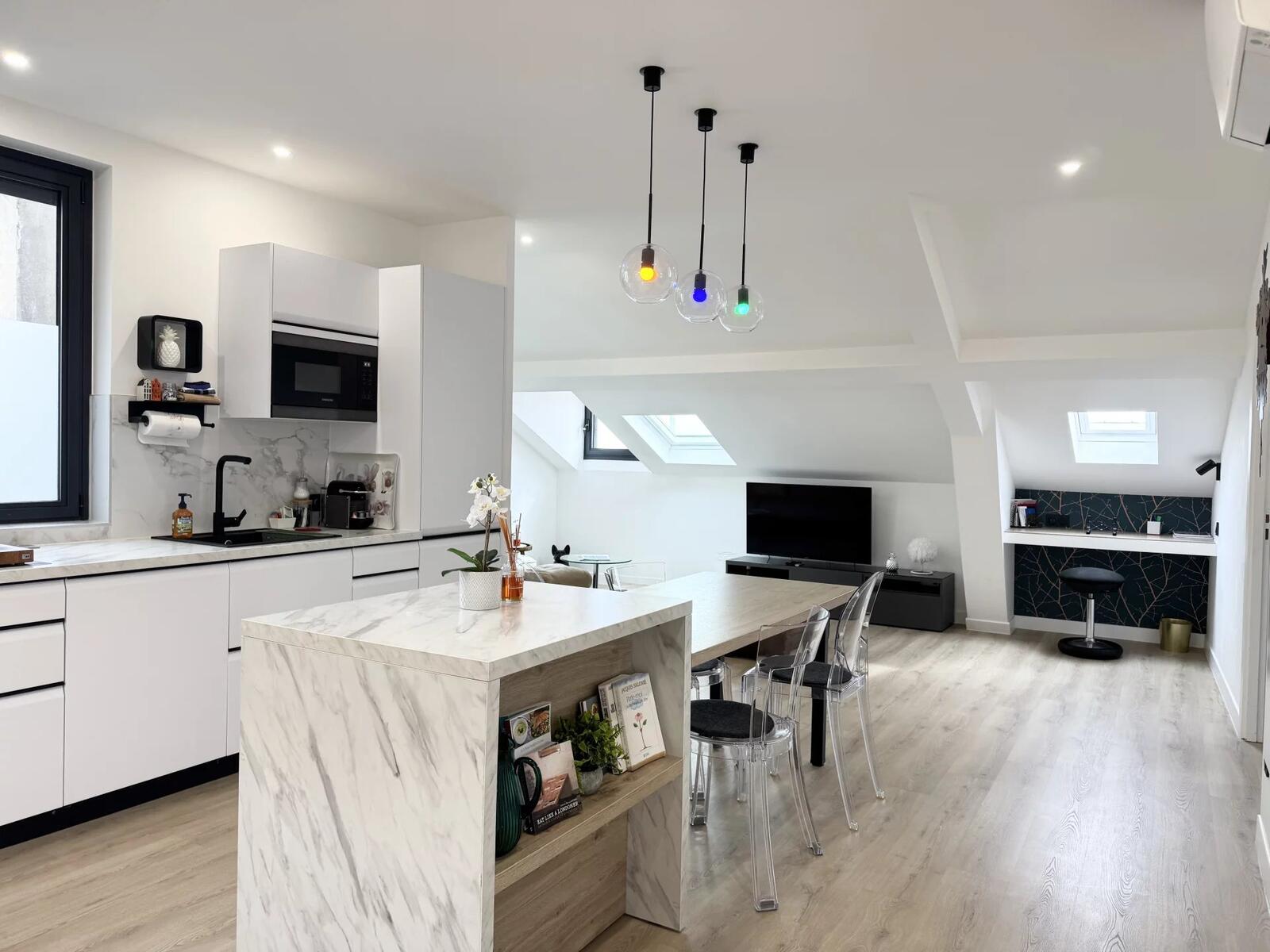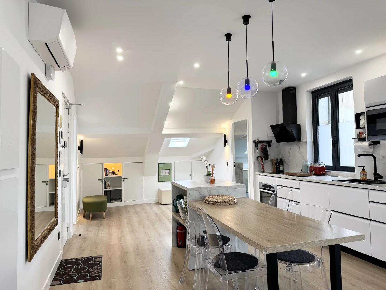 Entièrement rénové avec goût, il se compose d’un séjour lumineux avec cuisine ouverte, créant un espace de vie convivial et contemporain.