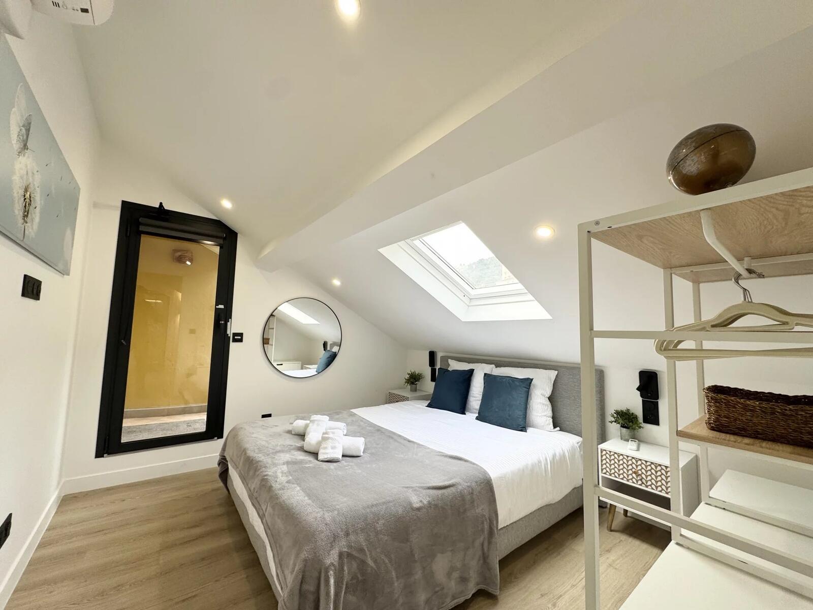 Les fenêtres de toit côté séjour offrent une vue mer, tandis que le balcon dévoile une agréable vue sur la montagne.