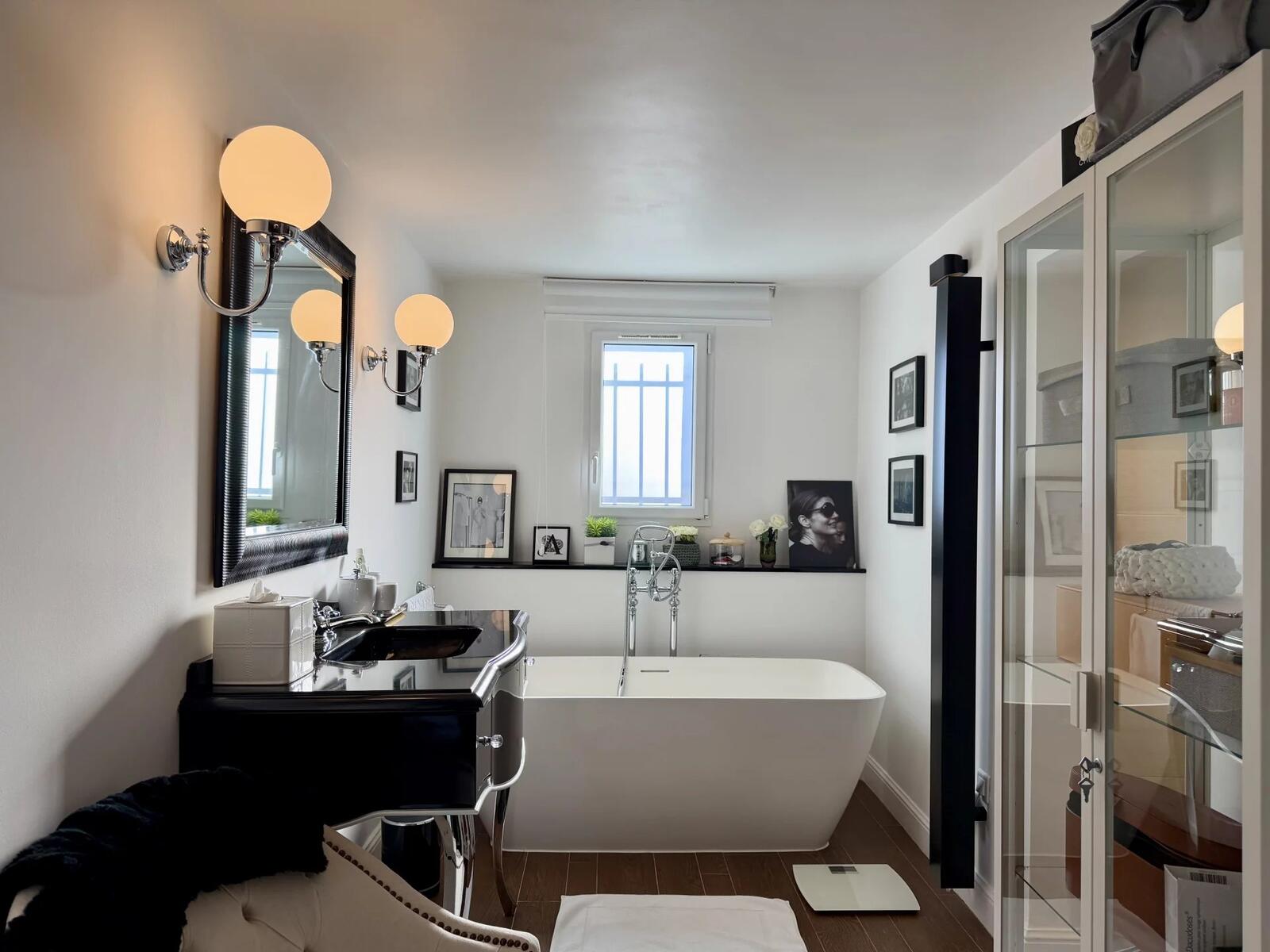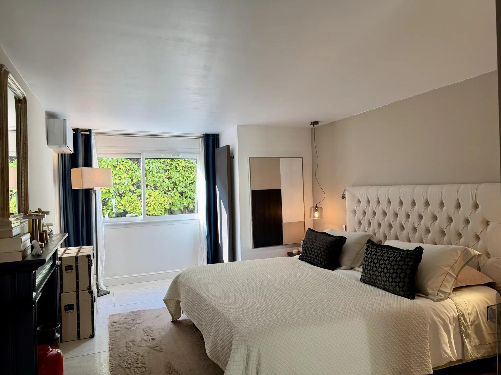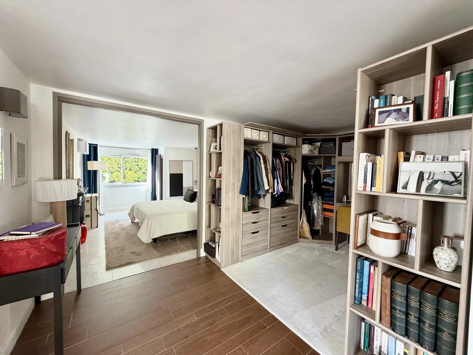 Au rez-de-jardin, la suite parentale dispose d’un grand dressing, d'un espace bureau et d’une salle de bains complète avec baignoire et douche. À l’arrière de la chambre se trouve également un vaste espace de rangement type cave, idéal pour le stockage.