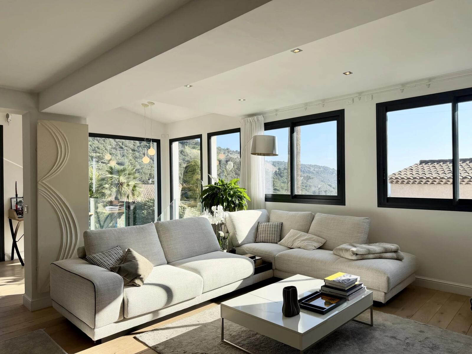 D’une surface habitable d’environ 206 m², la villa se déploie sur trois niveaux et offre de très beaux volumes baignés de lumière grâce à ses larges ouvertures vitrées.