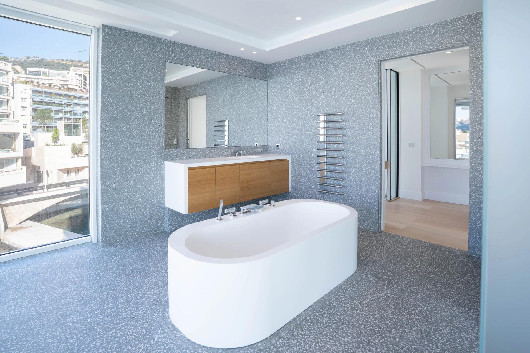 Dominant la Méditerranée, le Port Hercule et le Rocher de Monaco, il bénéficie de vues panoramiques ininterrompues et offre une combinaison rare de volumes, de lumière et d’intimité absolue.