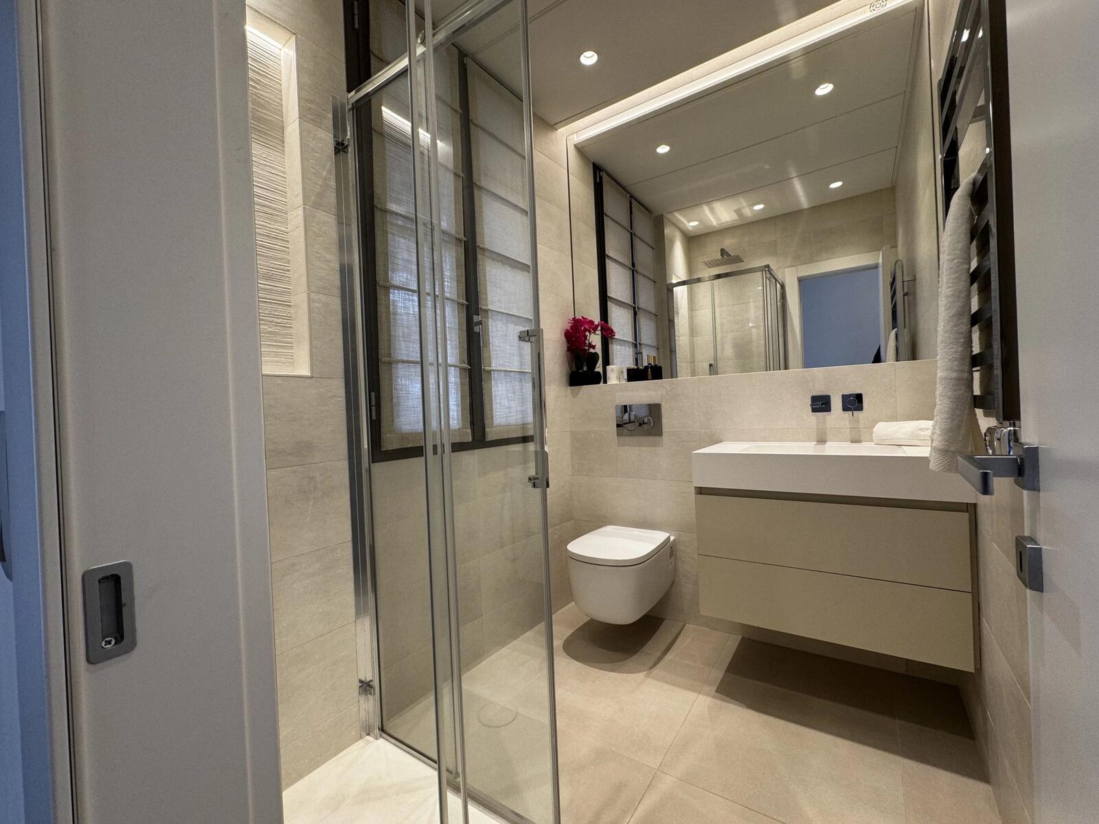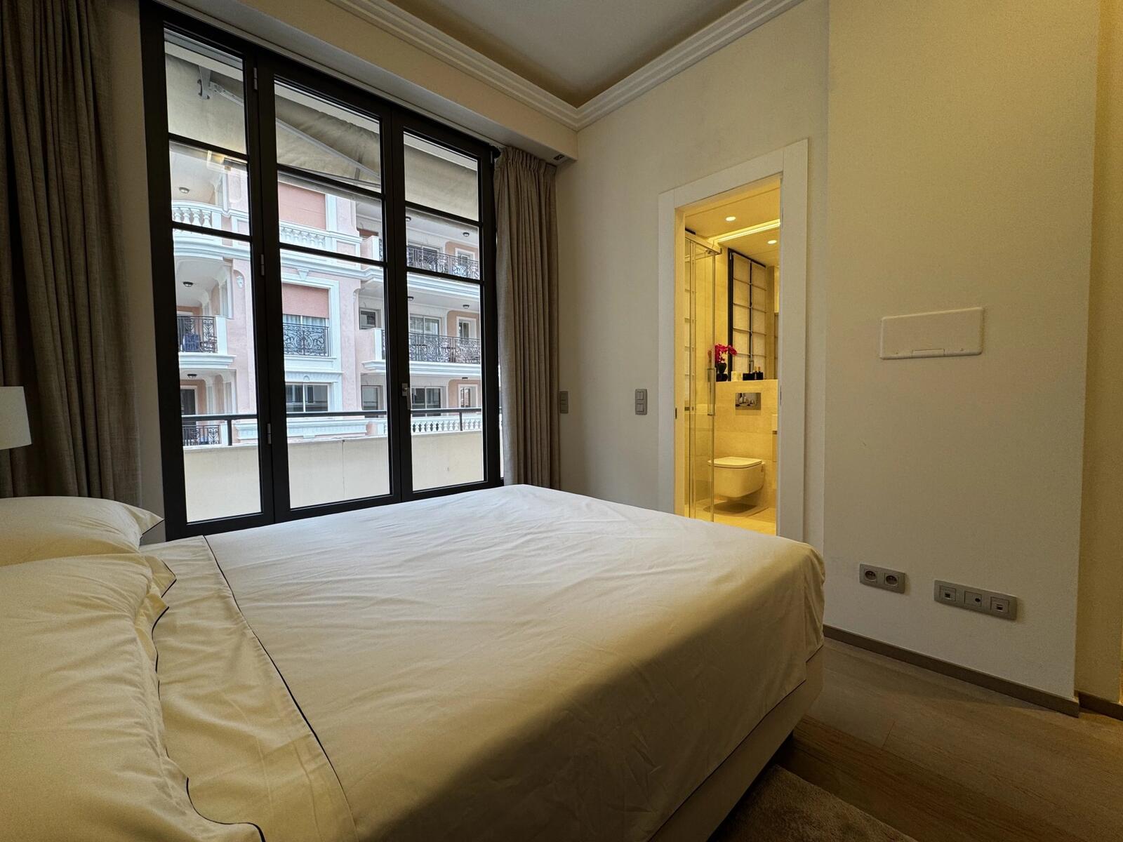 Il se compose d’un séjour lumineux avec cuisine américaine entièrement équipée, ouvrant sur un balcon. La partie nuit comprend deux chambres, chacune disposant de sa propre salle de douche, ainsi qu’une toilette invités.